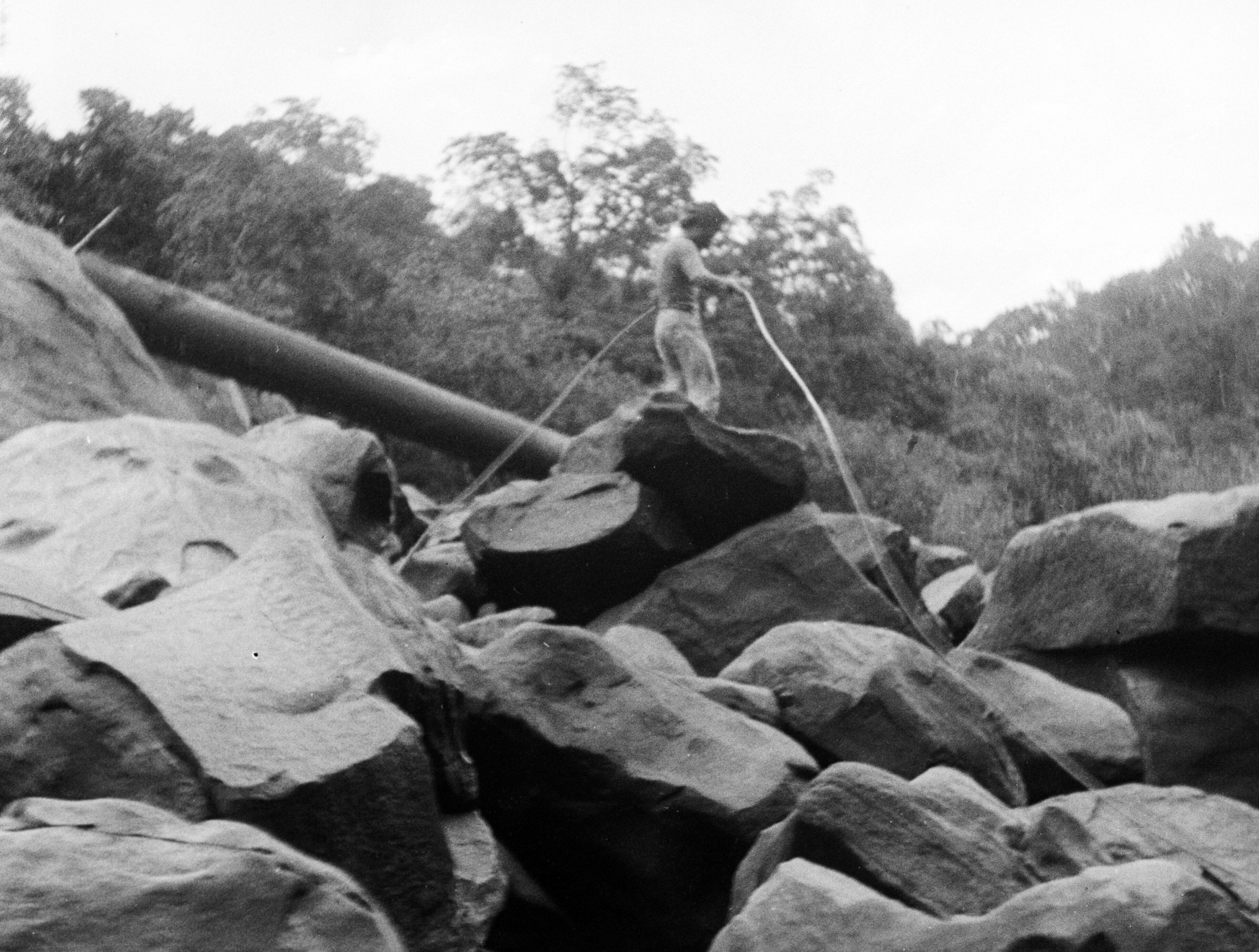 'Kihams; Boomstam op de rotsen'