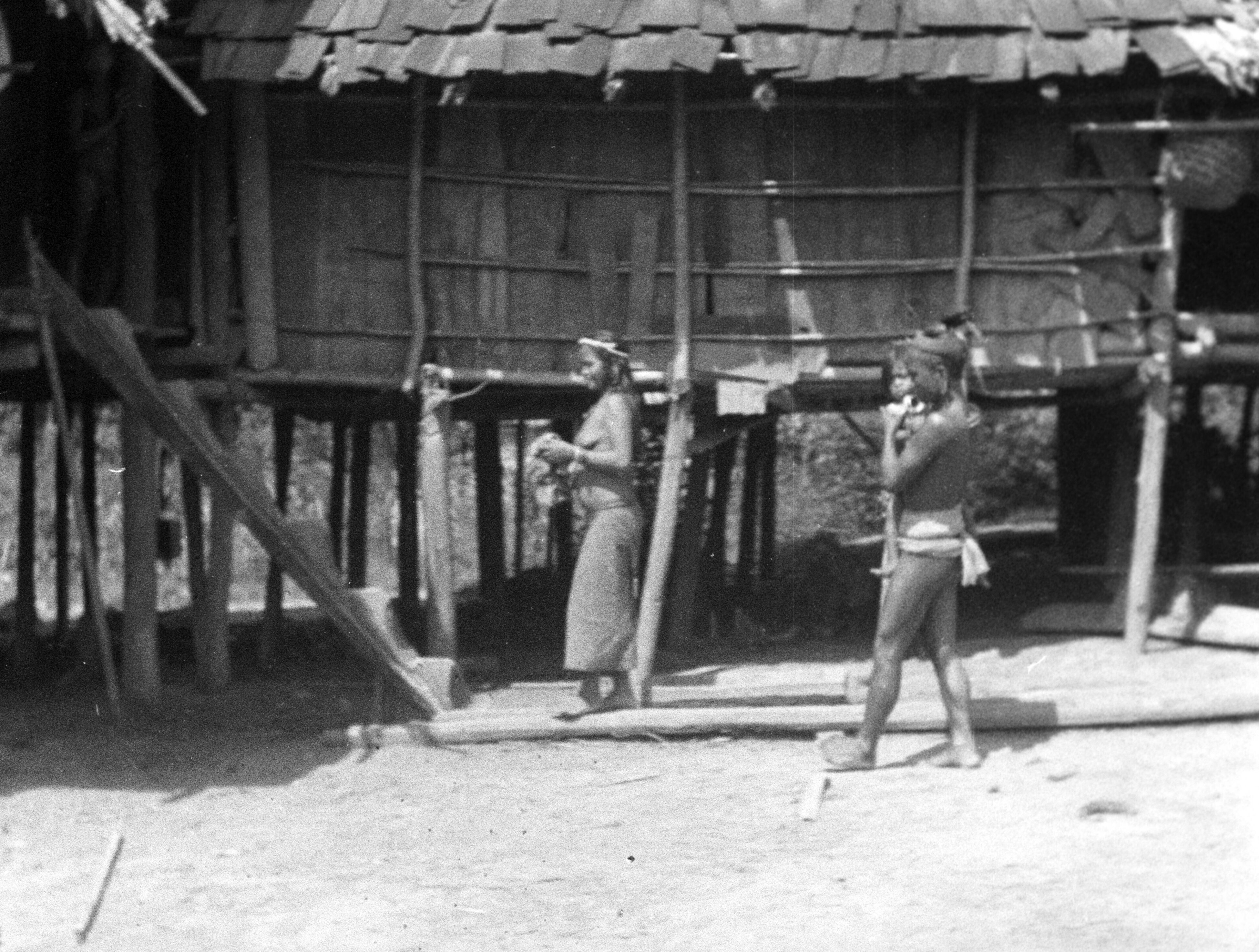 Bewoners bij een langhuis