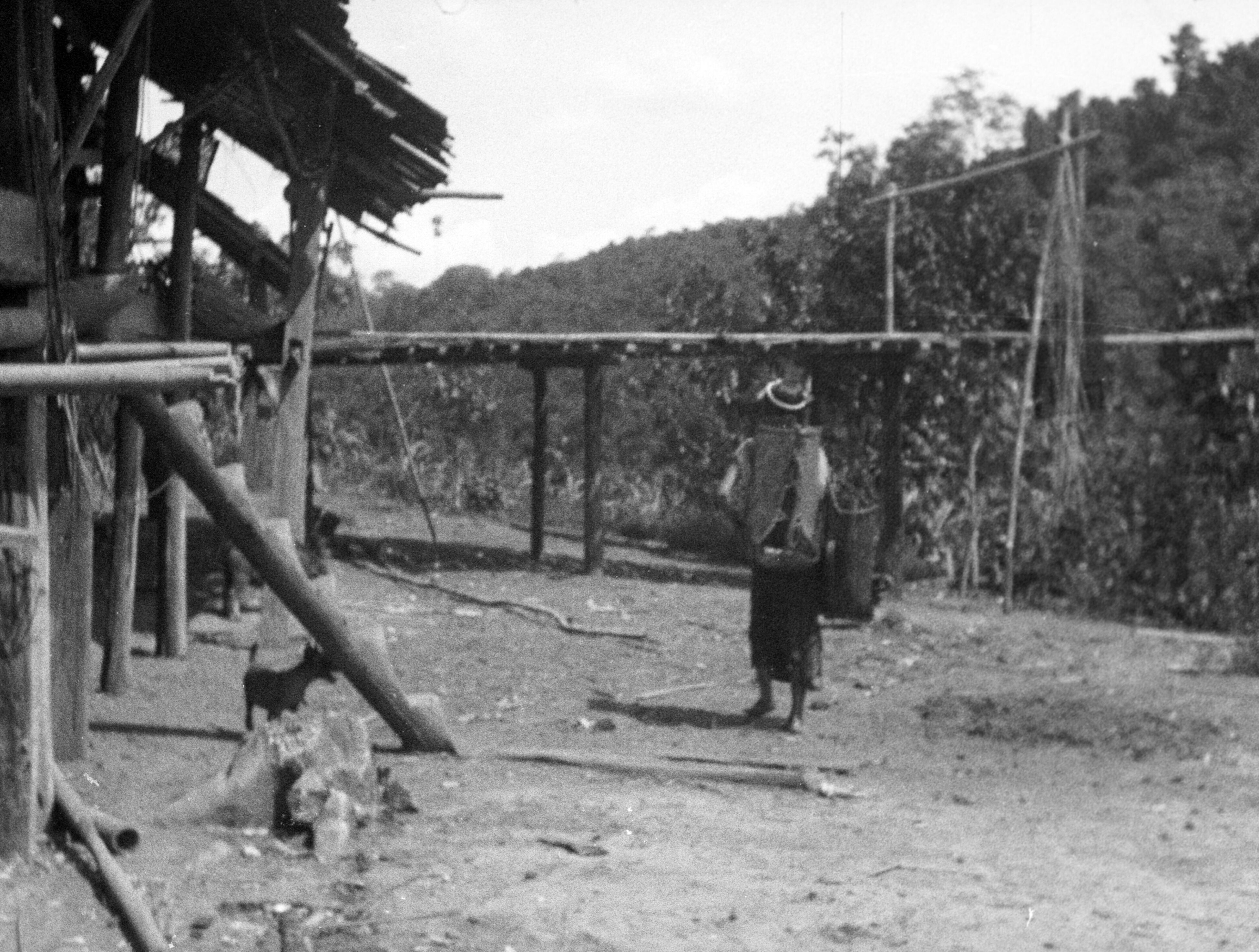 Bewoners bij een langhuis