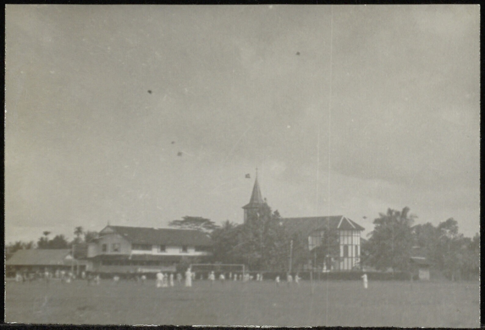 Een missiepost met een kerk en een sportveld