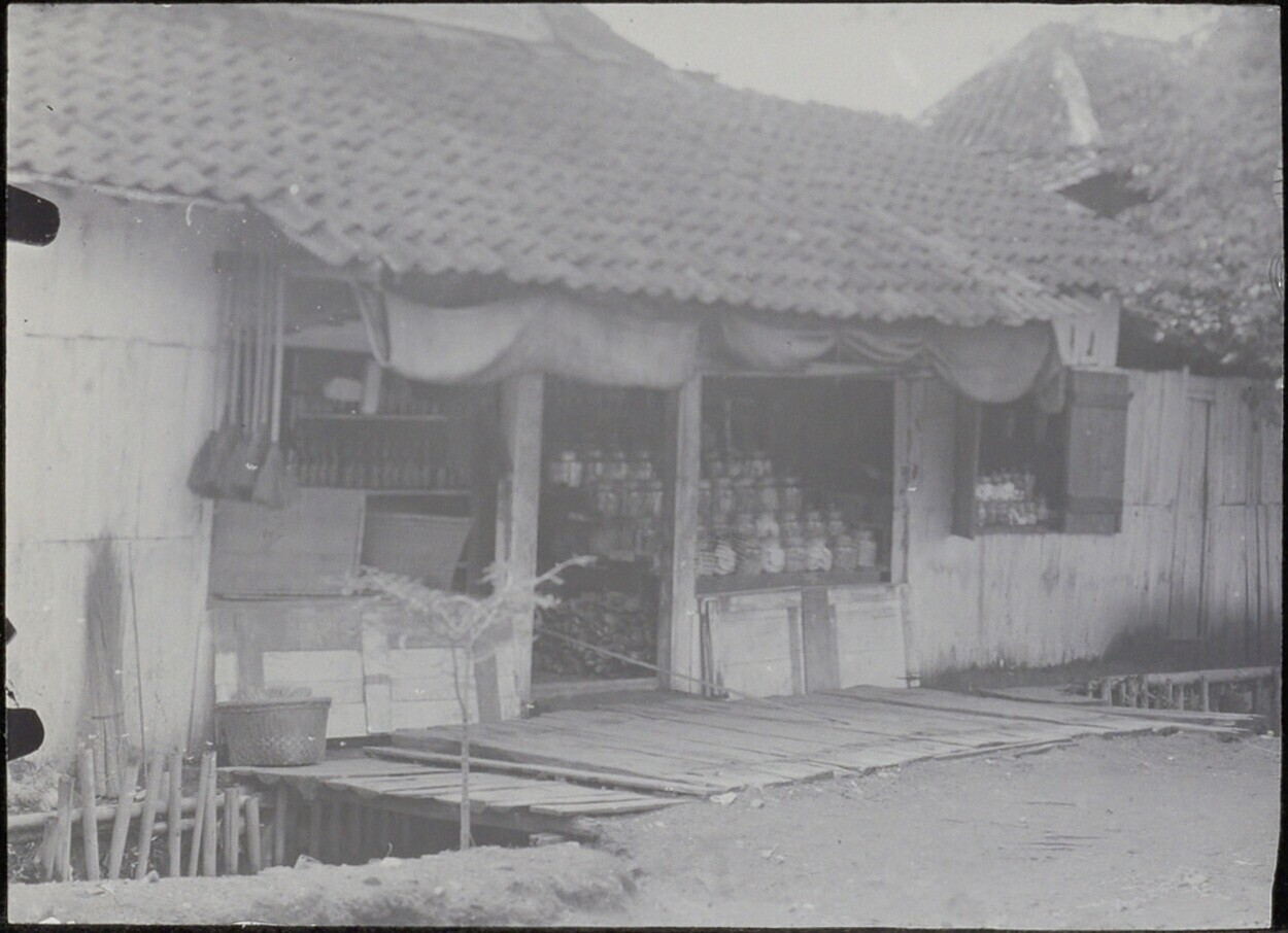 Open winkelpand met uitstalling van waren in glazen potten