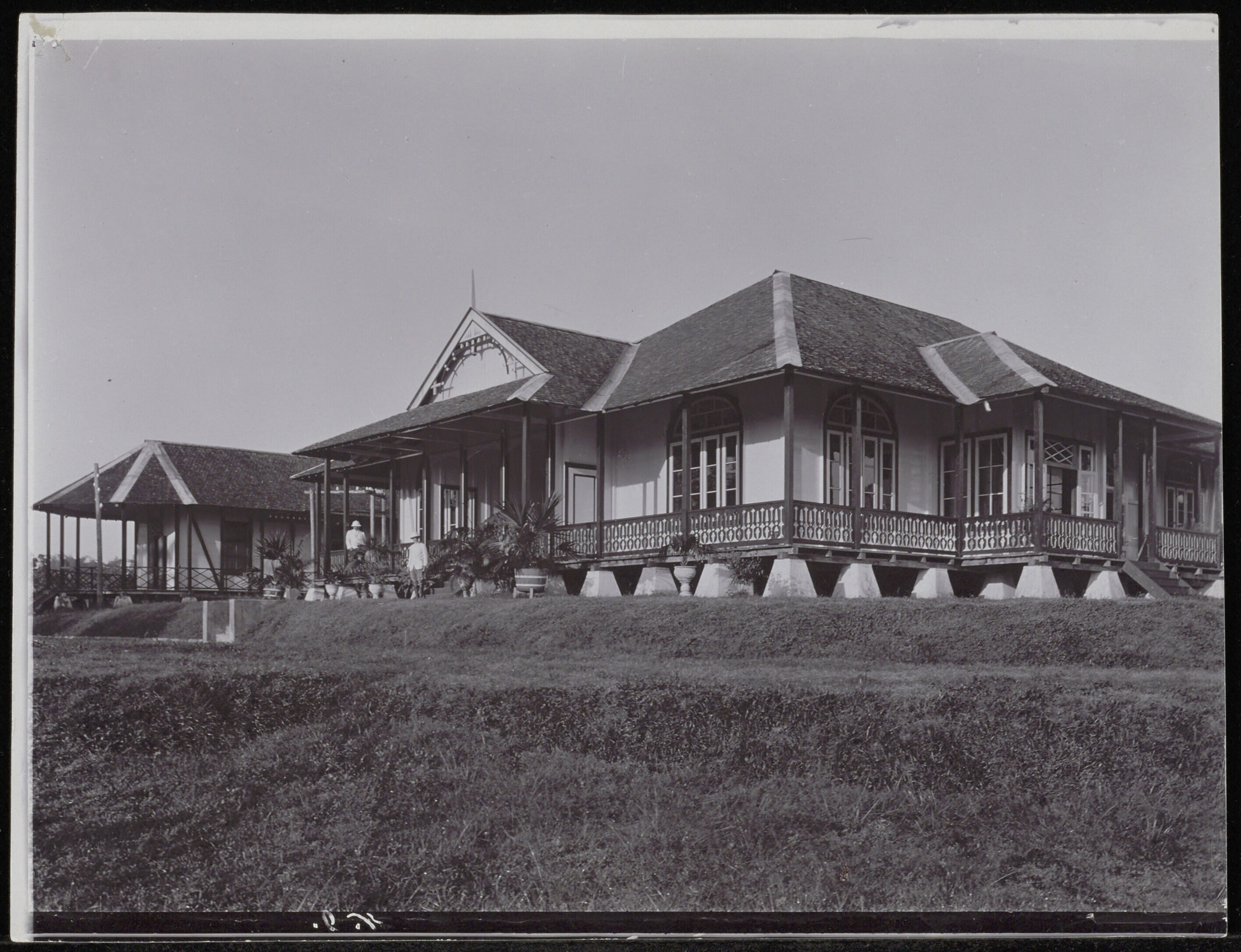 Houten houtvestershuis met omlopende galerij aan de lijn Blora-Tjepoe