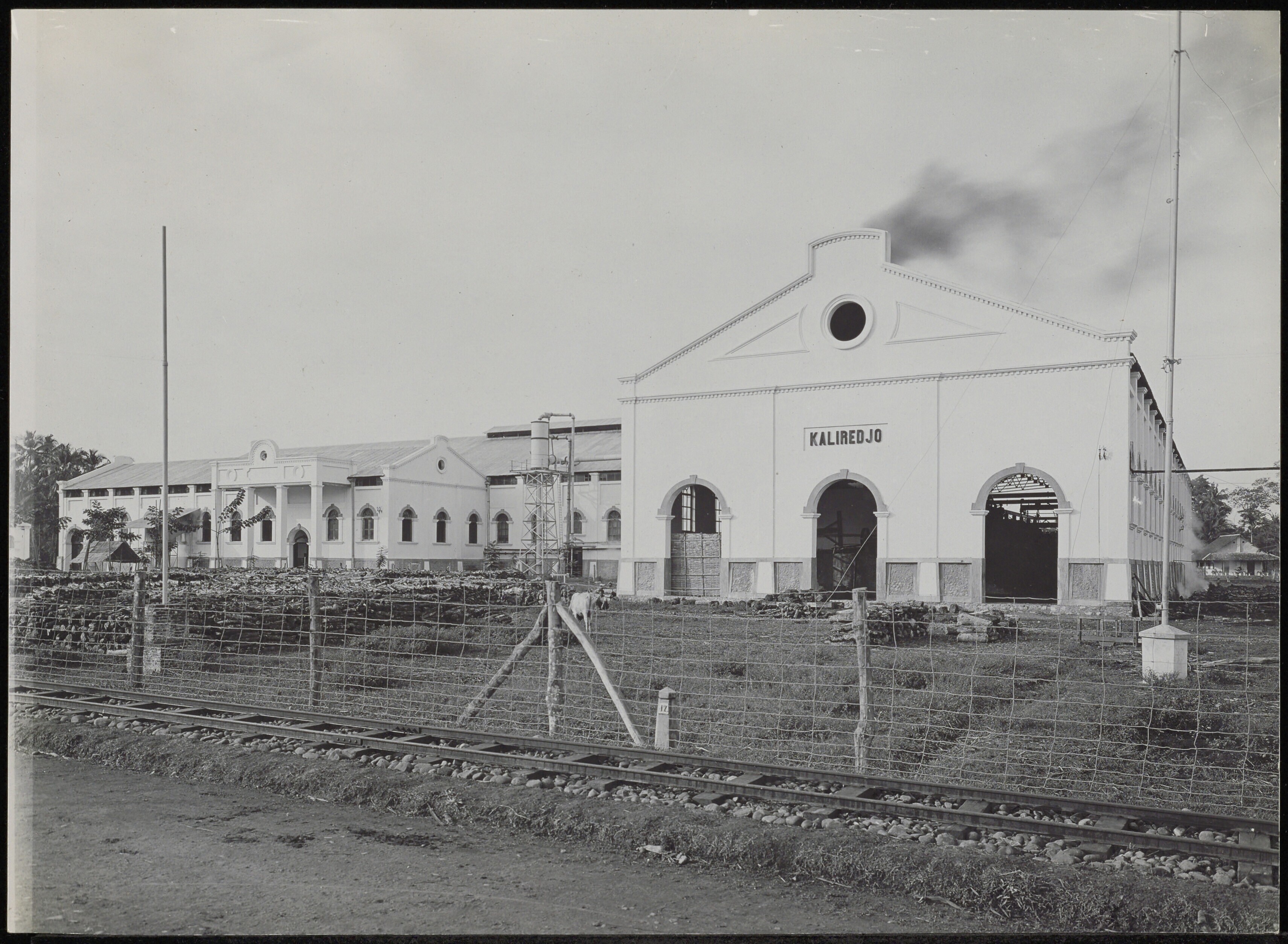 Moderne suikerfabriek zonder schoorsteen op onderneming Kaliredjo