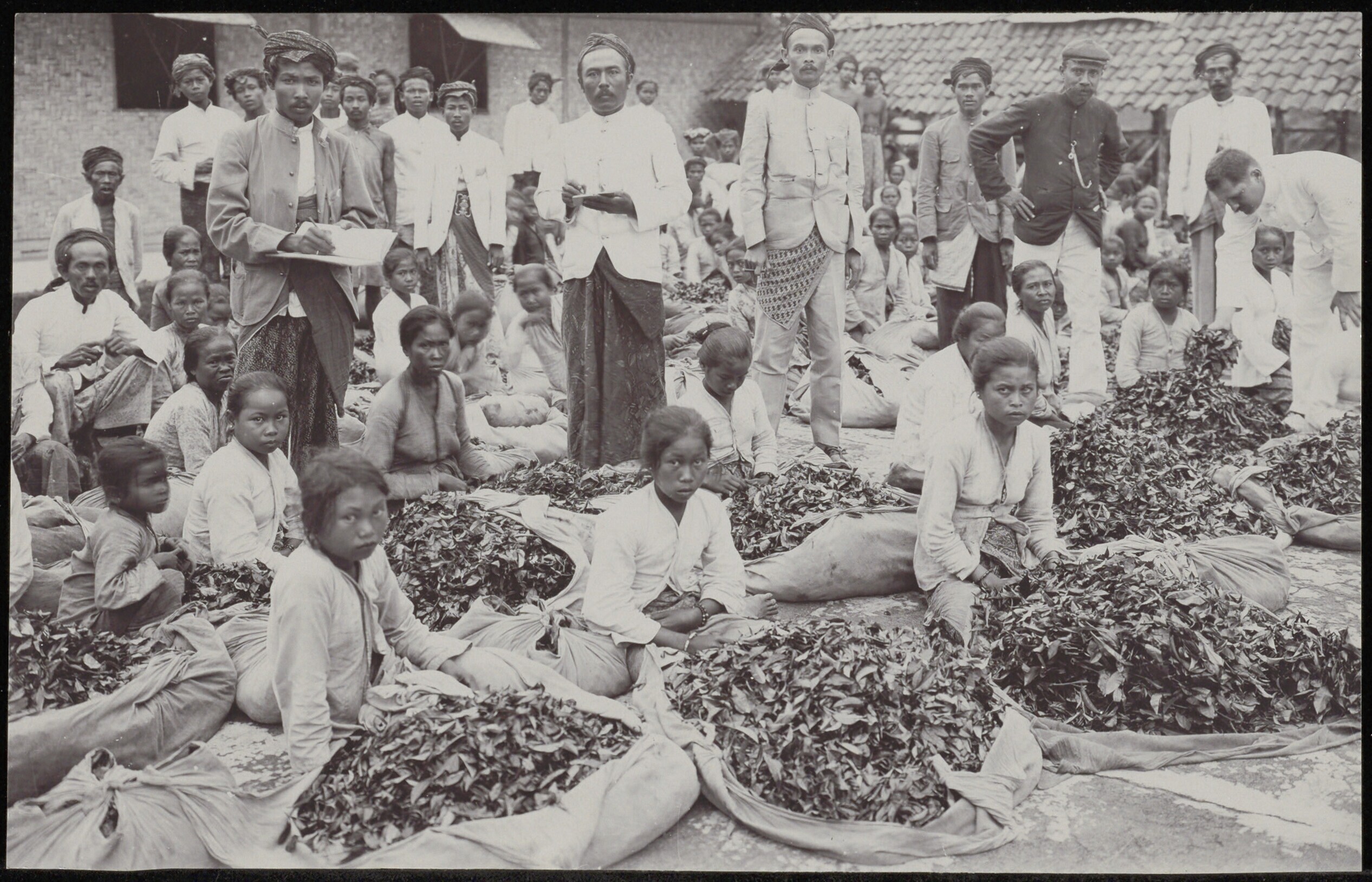 Aanvoer van theebladen bij theefabriek P.A. Claran