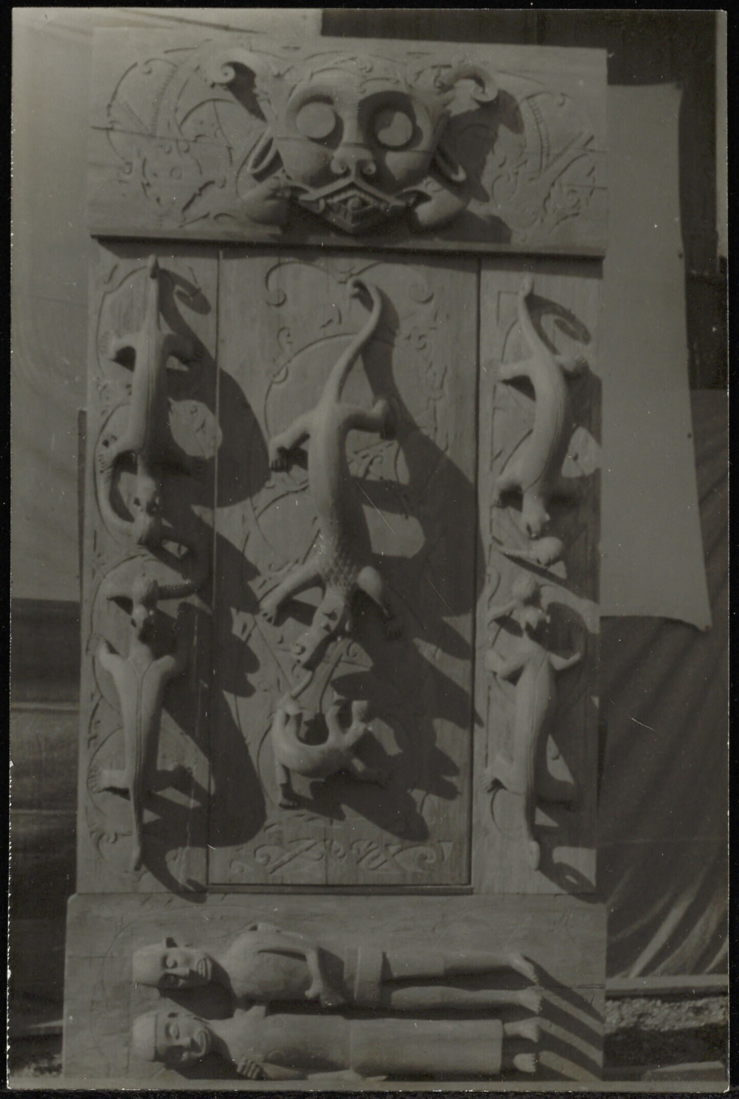 Deur met houtsnijwerk voor een missiehuis