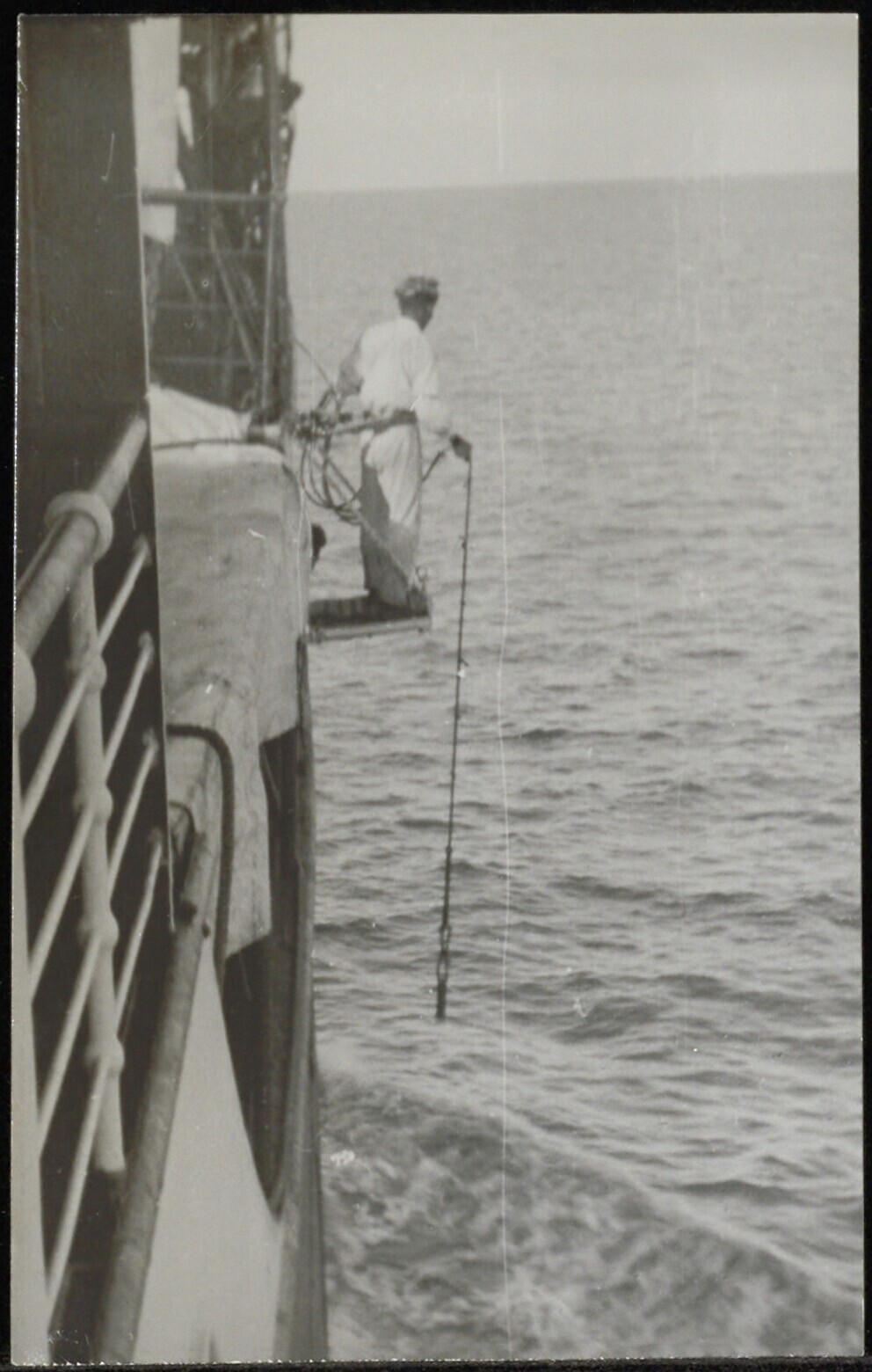 Lid van de bemanning van een KPM-schip bepaalt diepte van een rivierarm met een peillood