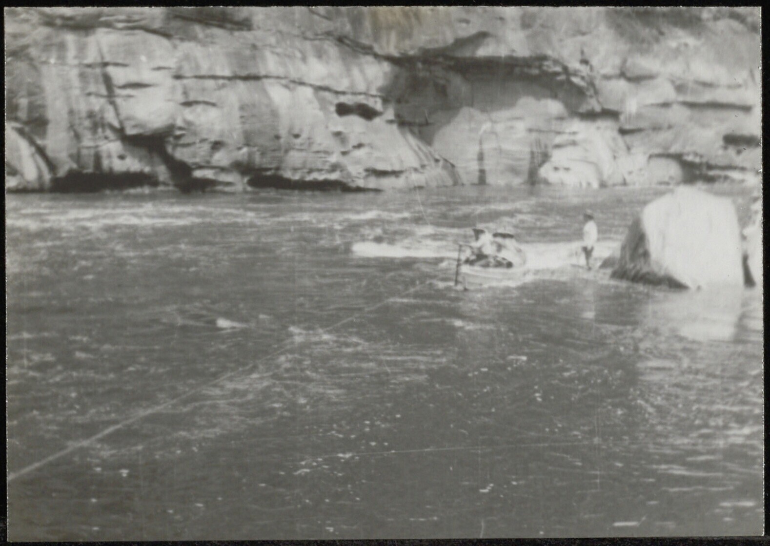 Bemande prauw bezig met het oversteken van de rivier de Barito