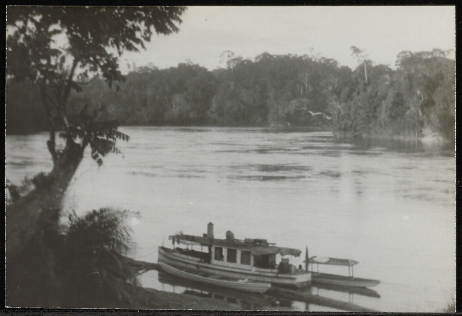 Aangemeerde boot aan de oever van de Barito-rivier