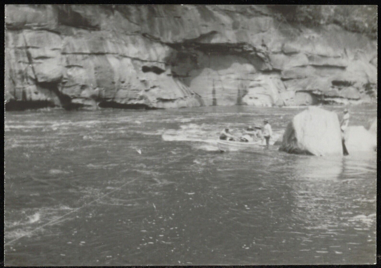 Bemande prauw bezig met het oversteken van de Barito-rivier