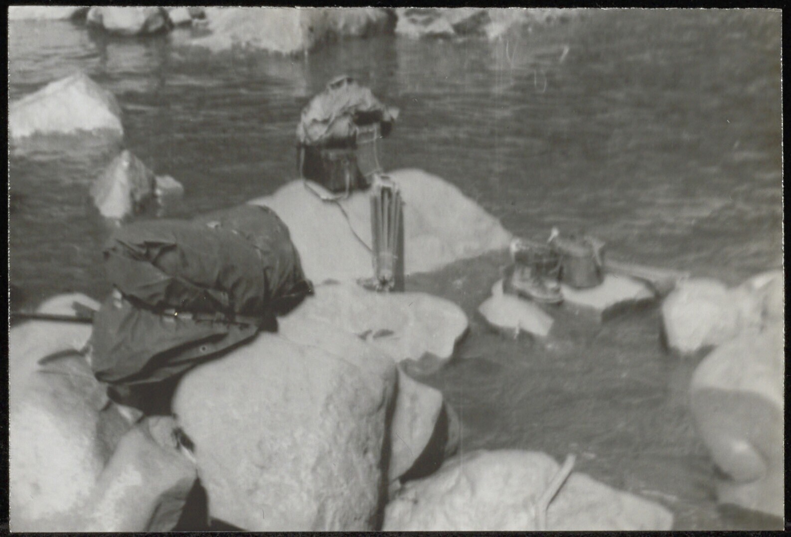 Bagage uitgestald op rotsen aan de oever van de Barito-rivier