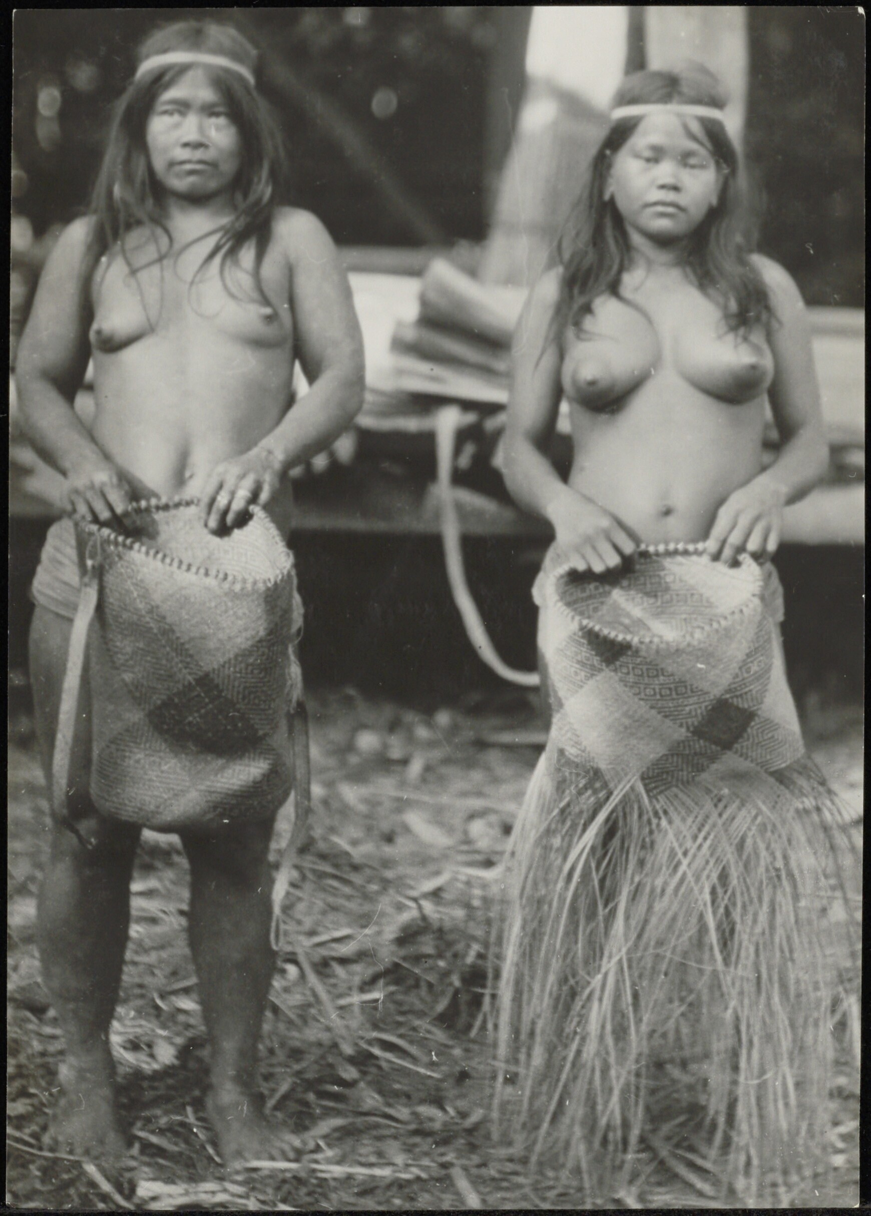 Twee Punan-Dayak meisjes uit het gebied van de Segah-rivier met vlechtwerk