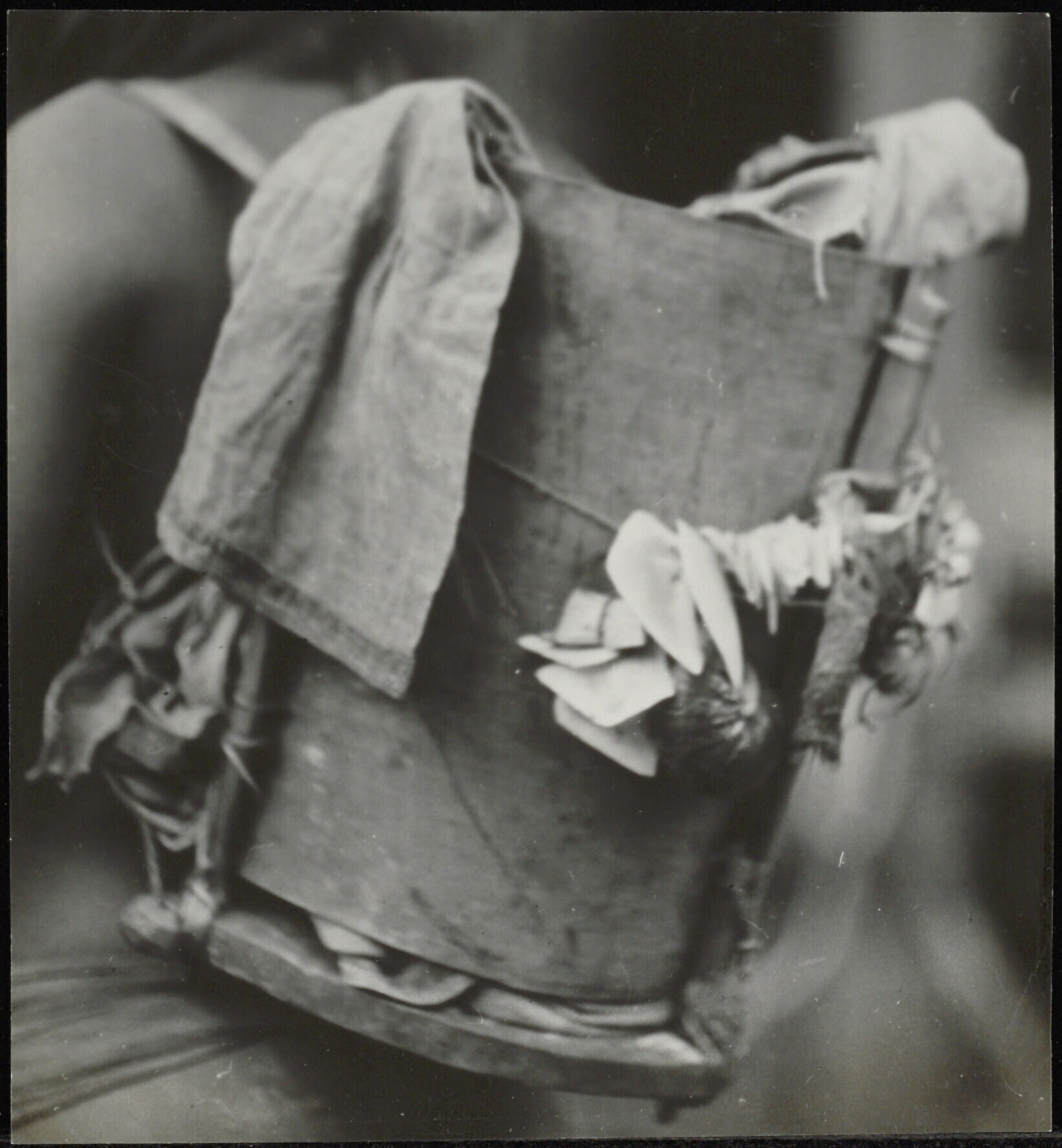 Versierde draagmand door een Punan-Dayak vrouw op de rug gedragen