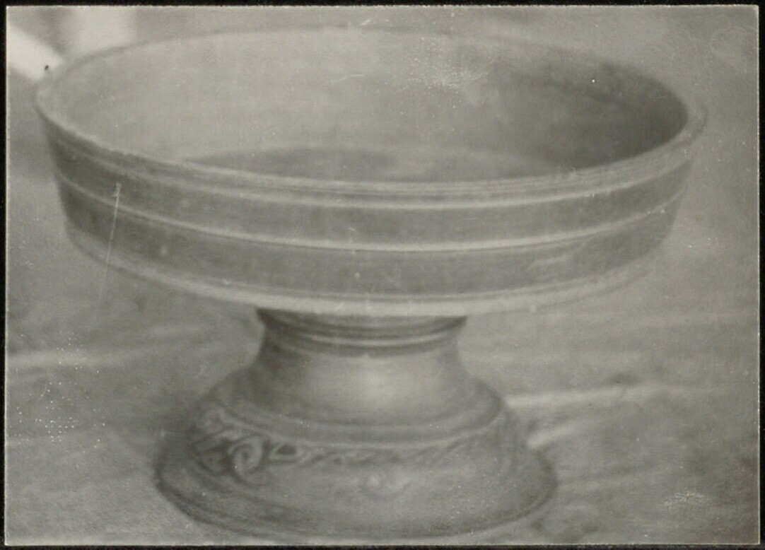 Versierde koperen schaal op voet