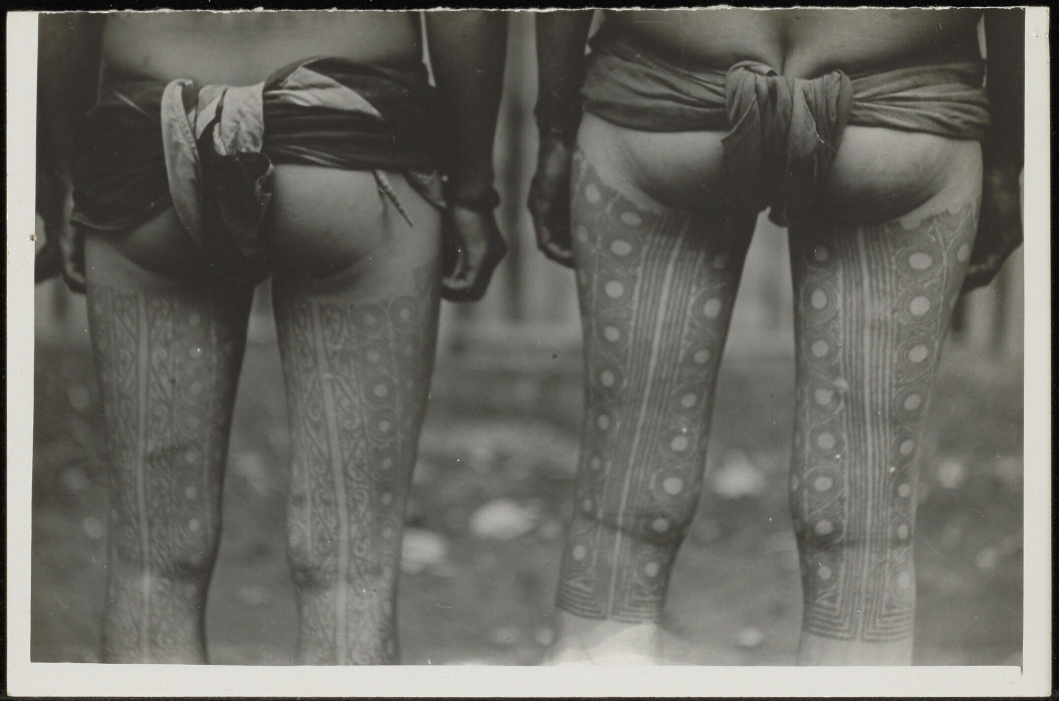 Getatoeëerde benen van Dayak vrouwen uit het gebied van de Segah-rivier