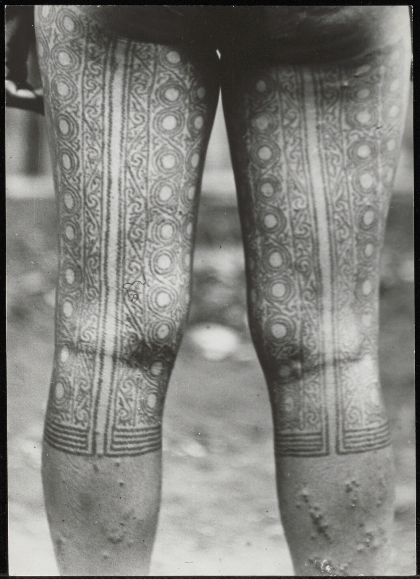 Getatoeëerde benen van een Dayak vrouw uit het gebied van de Segah-rivier