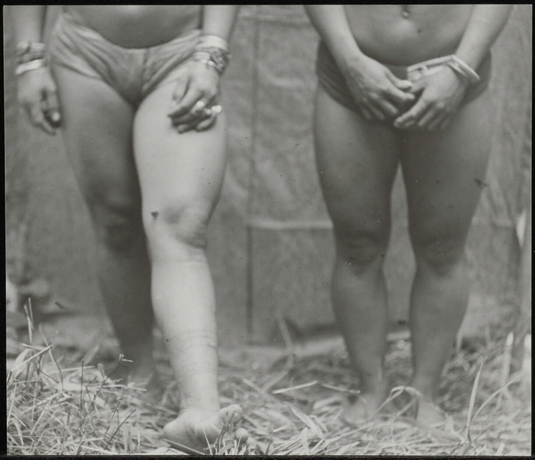 Dayak vrouwen uit het gebied van de Segah-Kelai-rivier waarvan een met een beentatoeage