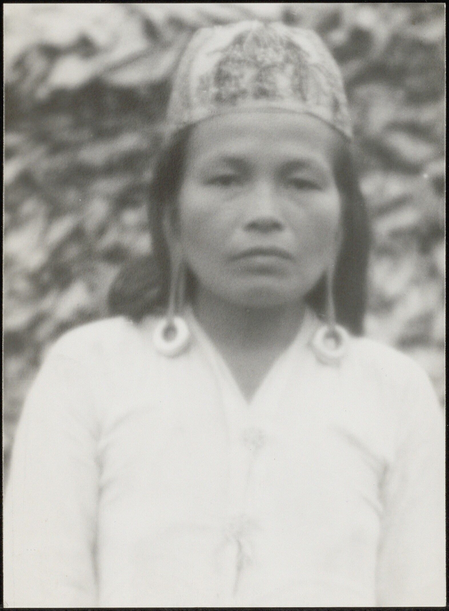Portret van een Dayak vrouw met oorsieraden