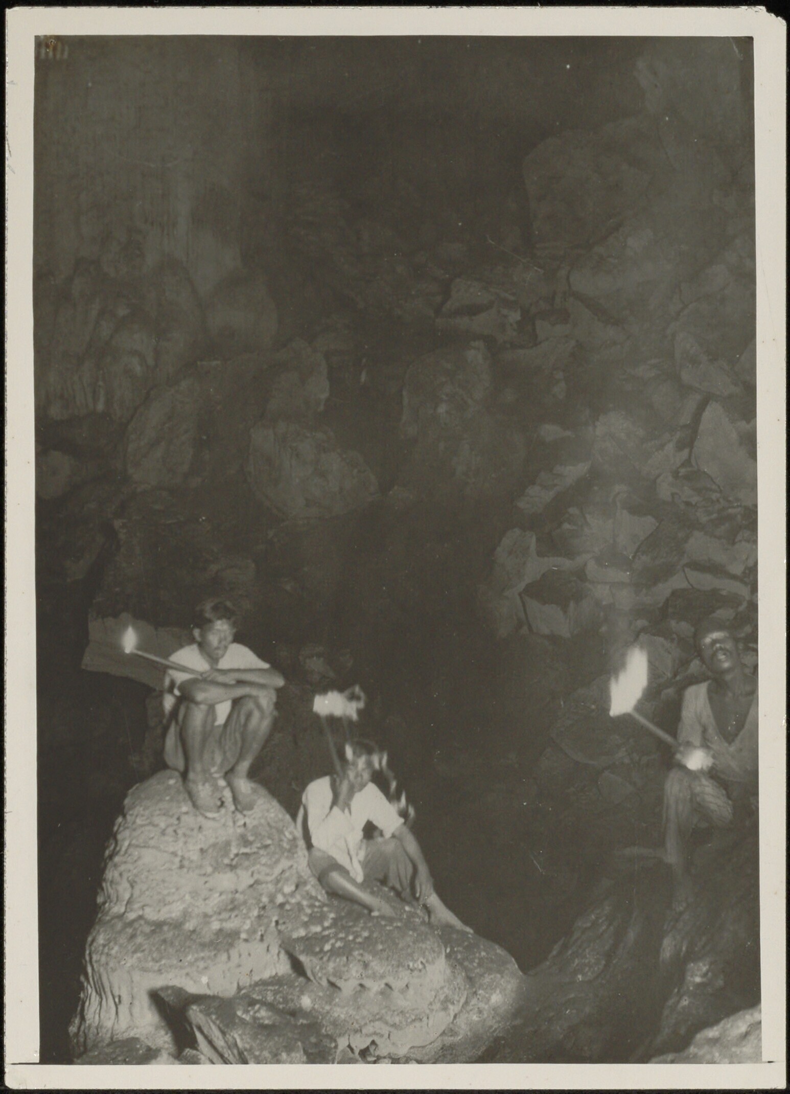 Drie Basap Dayak mannen in een grot in het gebied rond de Birang-rivier