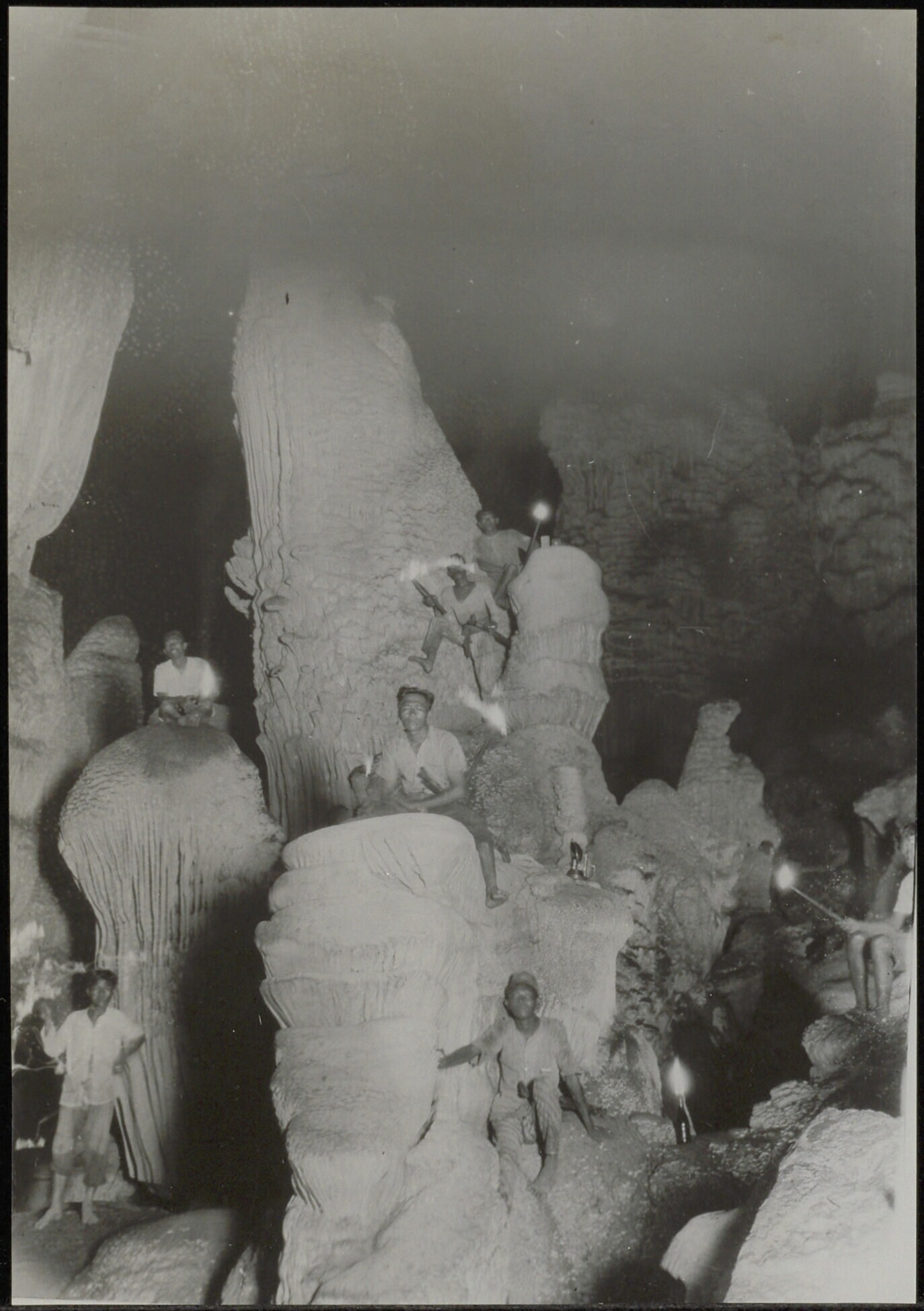 Basap Dayak mannen in een grot in het gebied rond de Birang-rivier