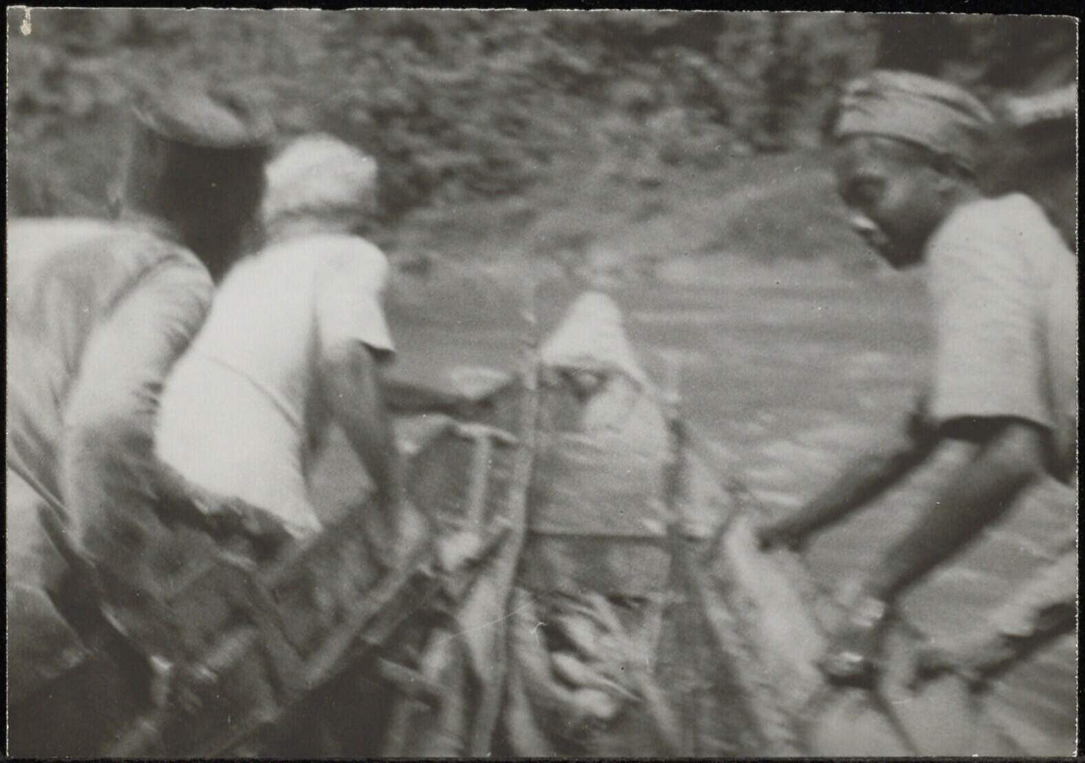 Doorhalen van een prauw bij een stroomversnelling in de Kelai-rivier nabij Segah