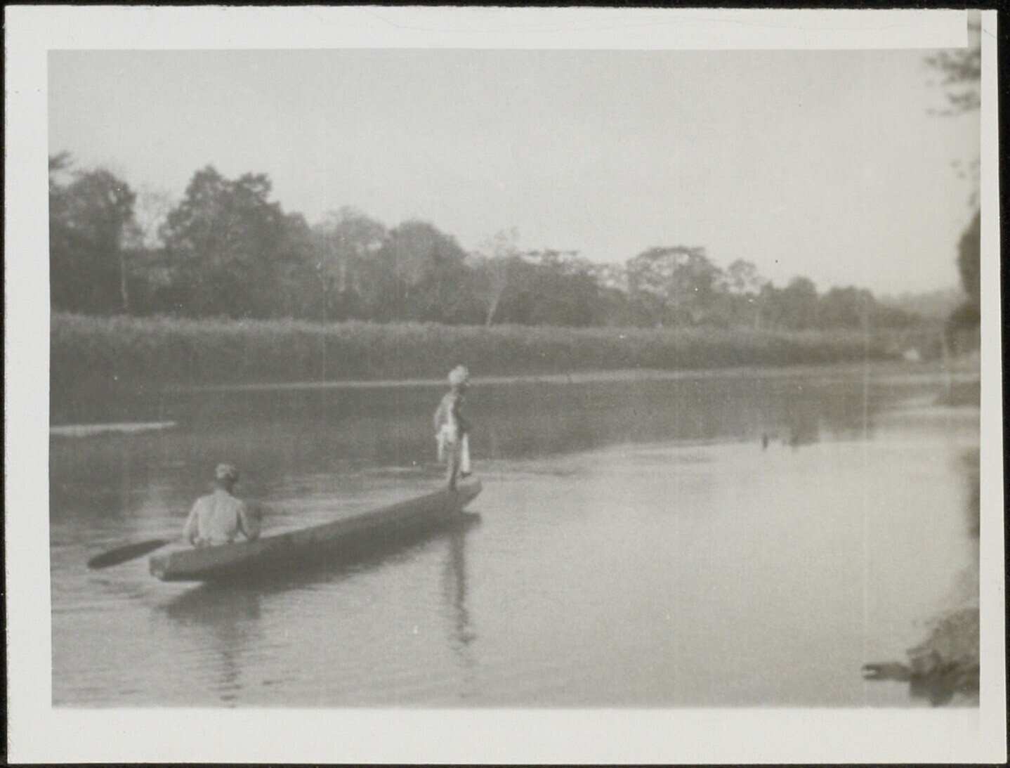 Kleine boot door twee mannen bemand op de Segah-Kelai