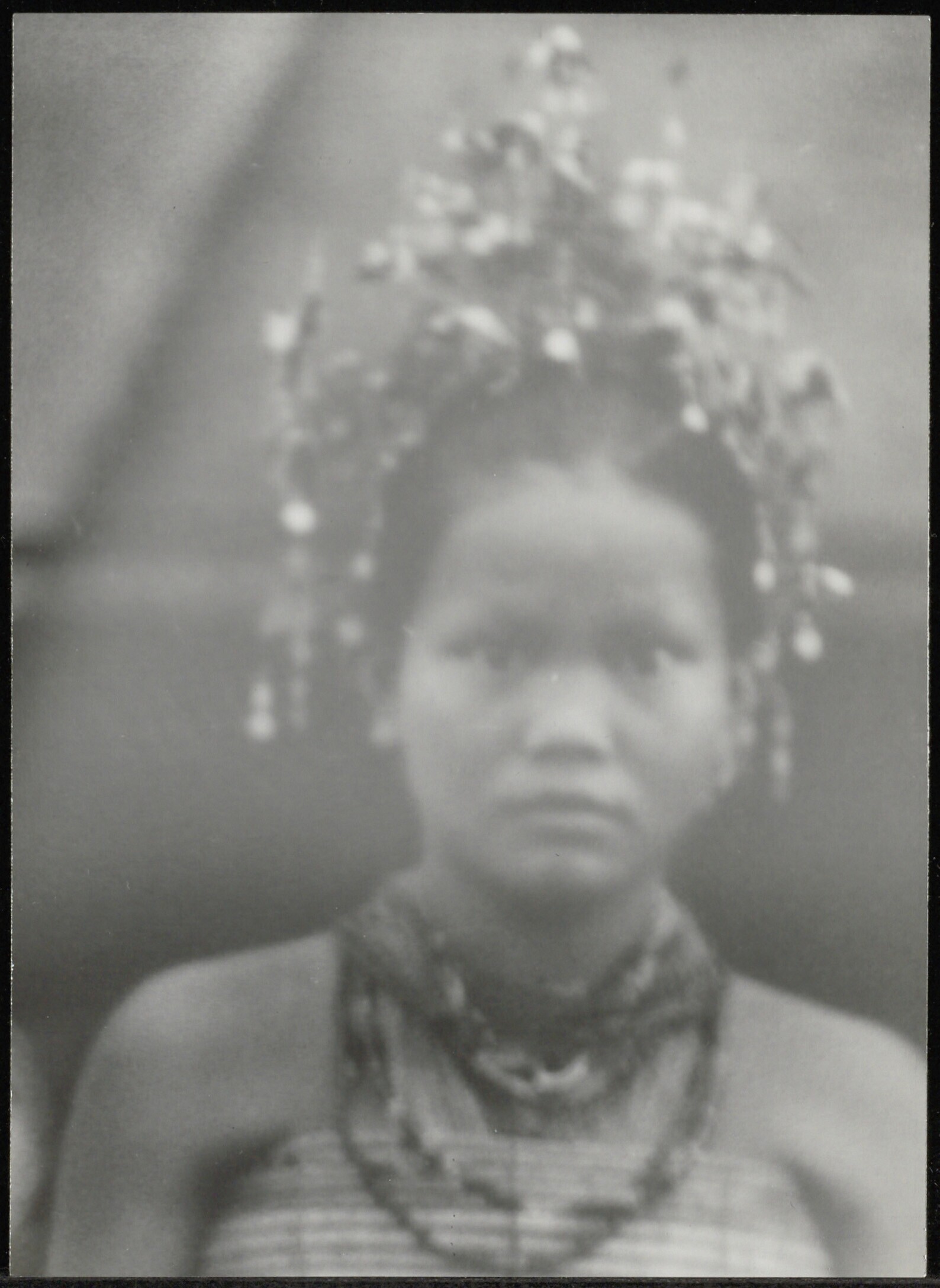 Portret van een Dayak meisje met hoofd- en halsversieringen