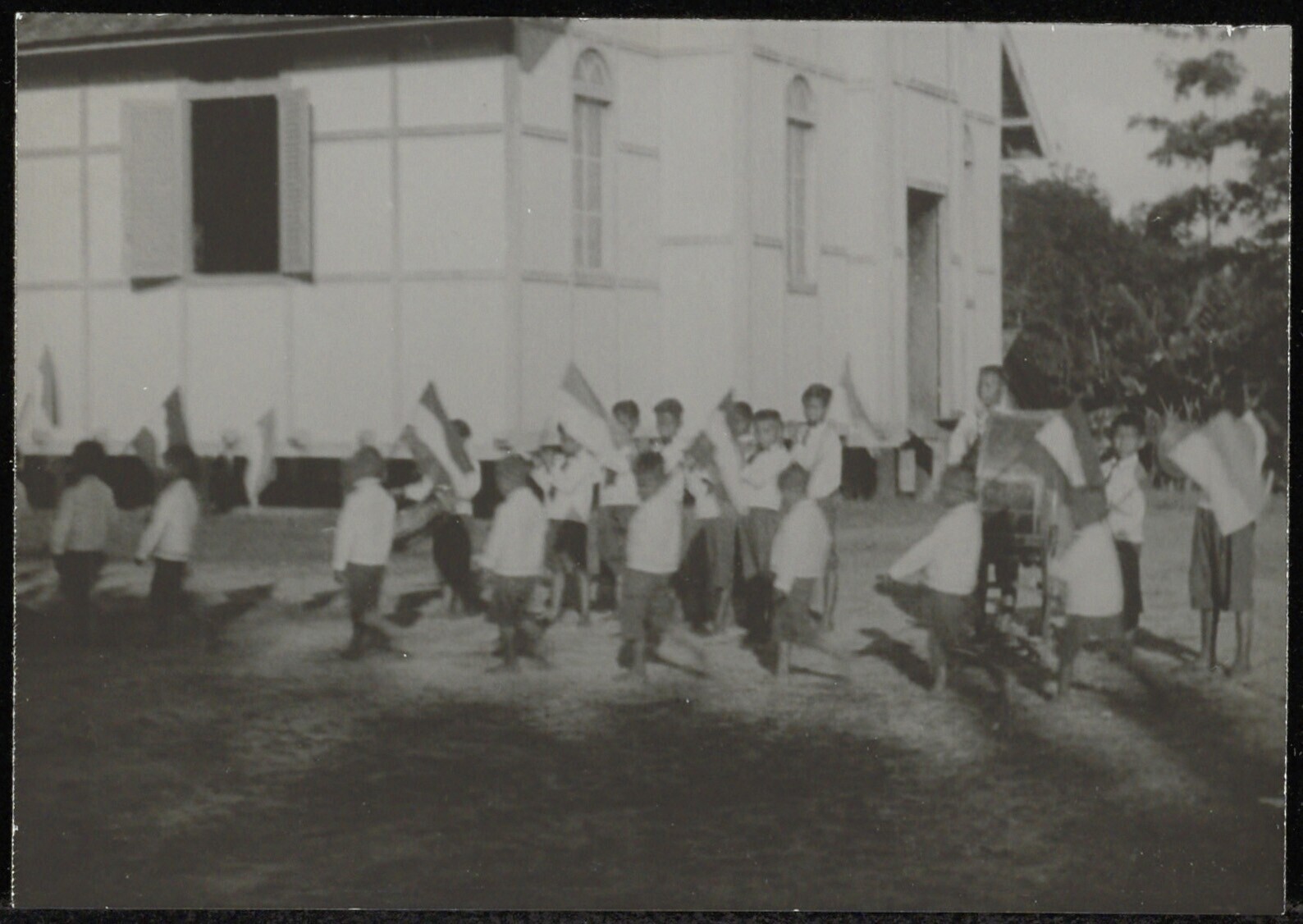 Groep leerlingen voor de missieschool in Nanga Sedjiram
