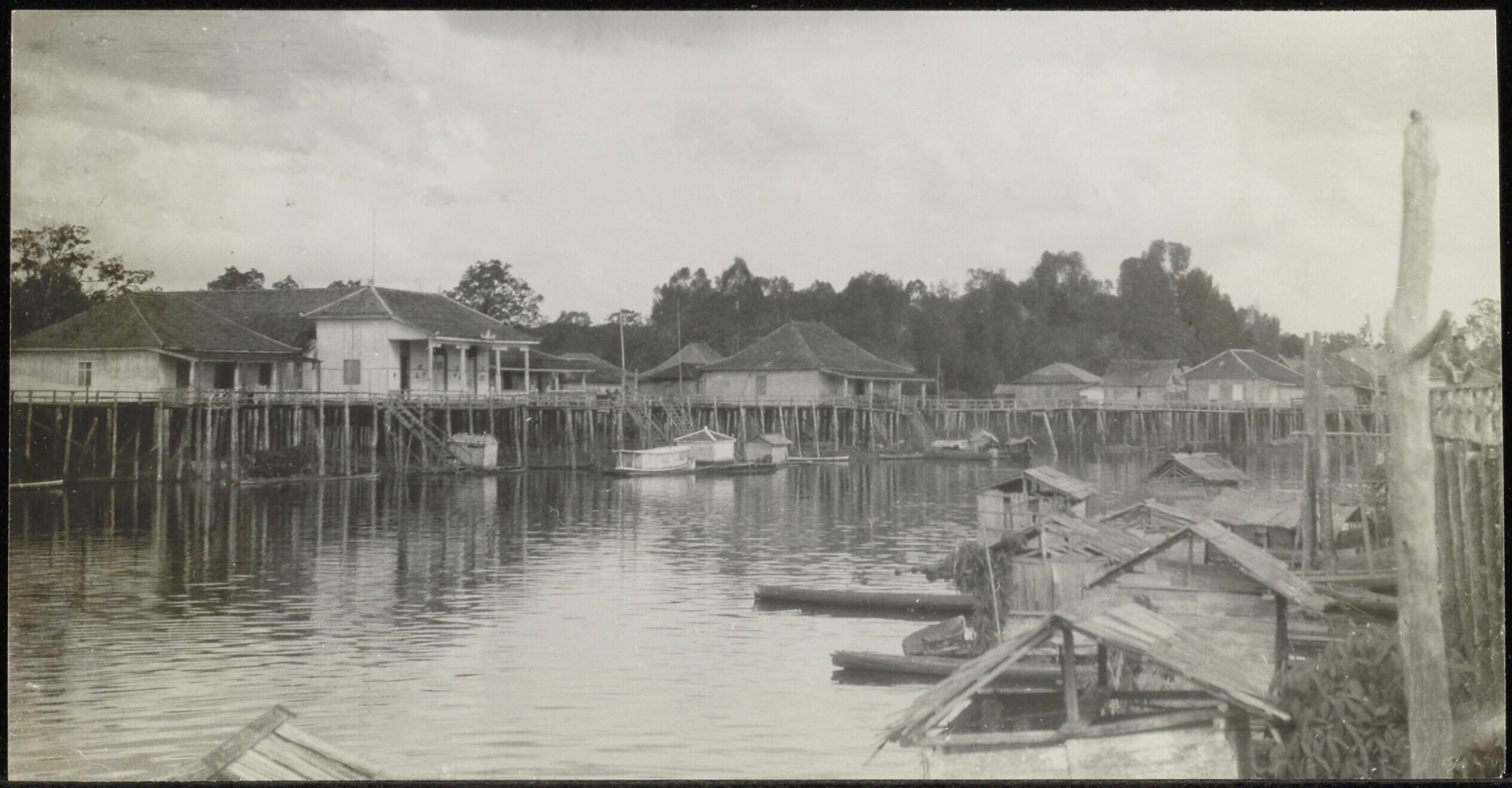 Gezicht op een nlerzetting aan de Kapuas-rivier