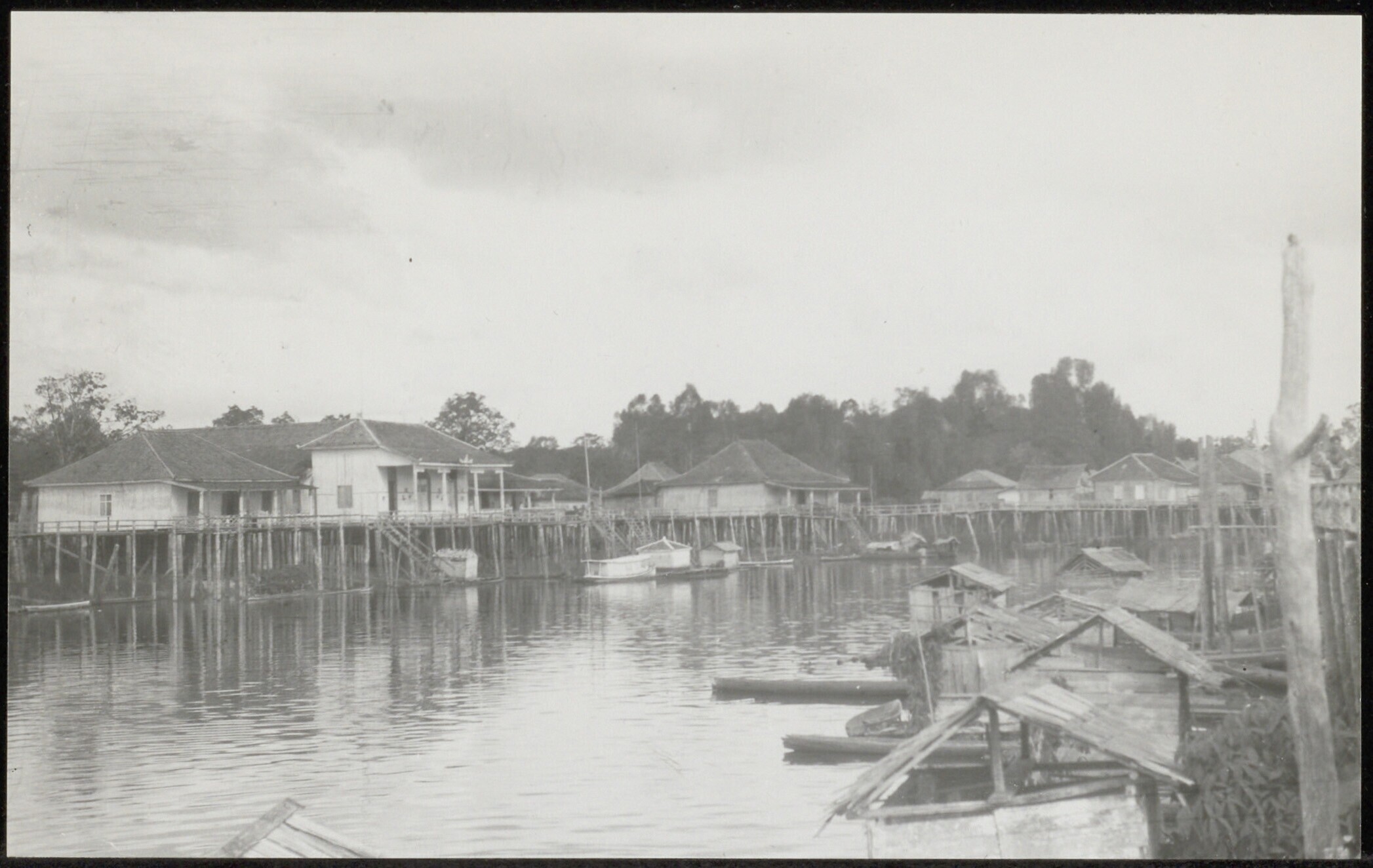 Woningen op palen in een nlerzetting aan de Kapuas-rivier