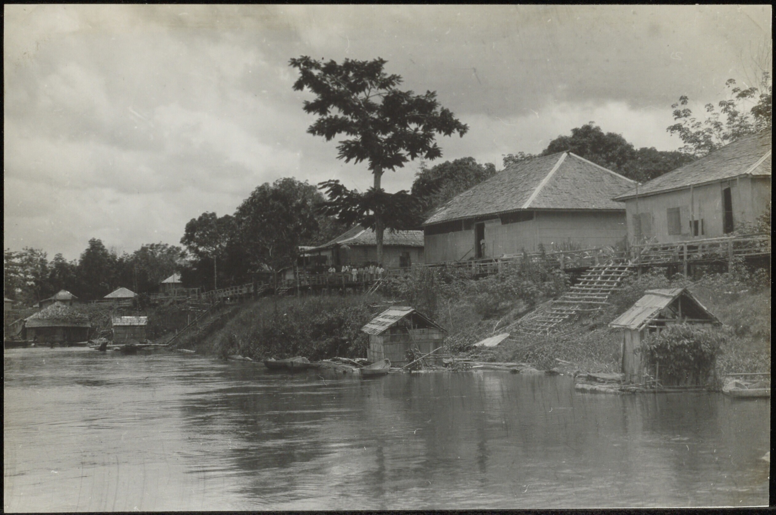 Gezicht op woningen in een nlerzetting aan de Kapuas-rivier