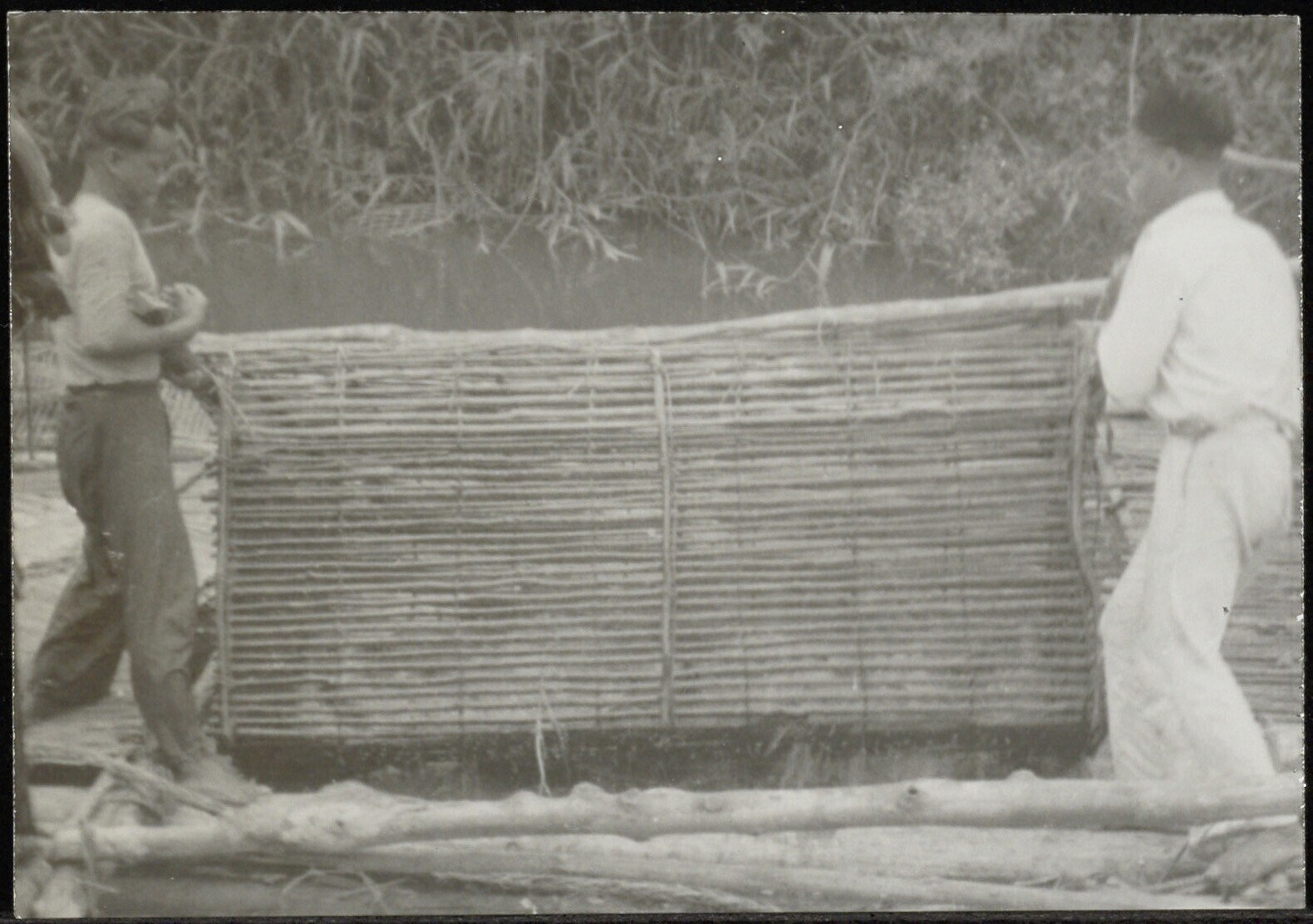 Het bouwen van fuiken en vlotten langs de Kapuas-rivier
