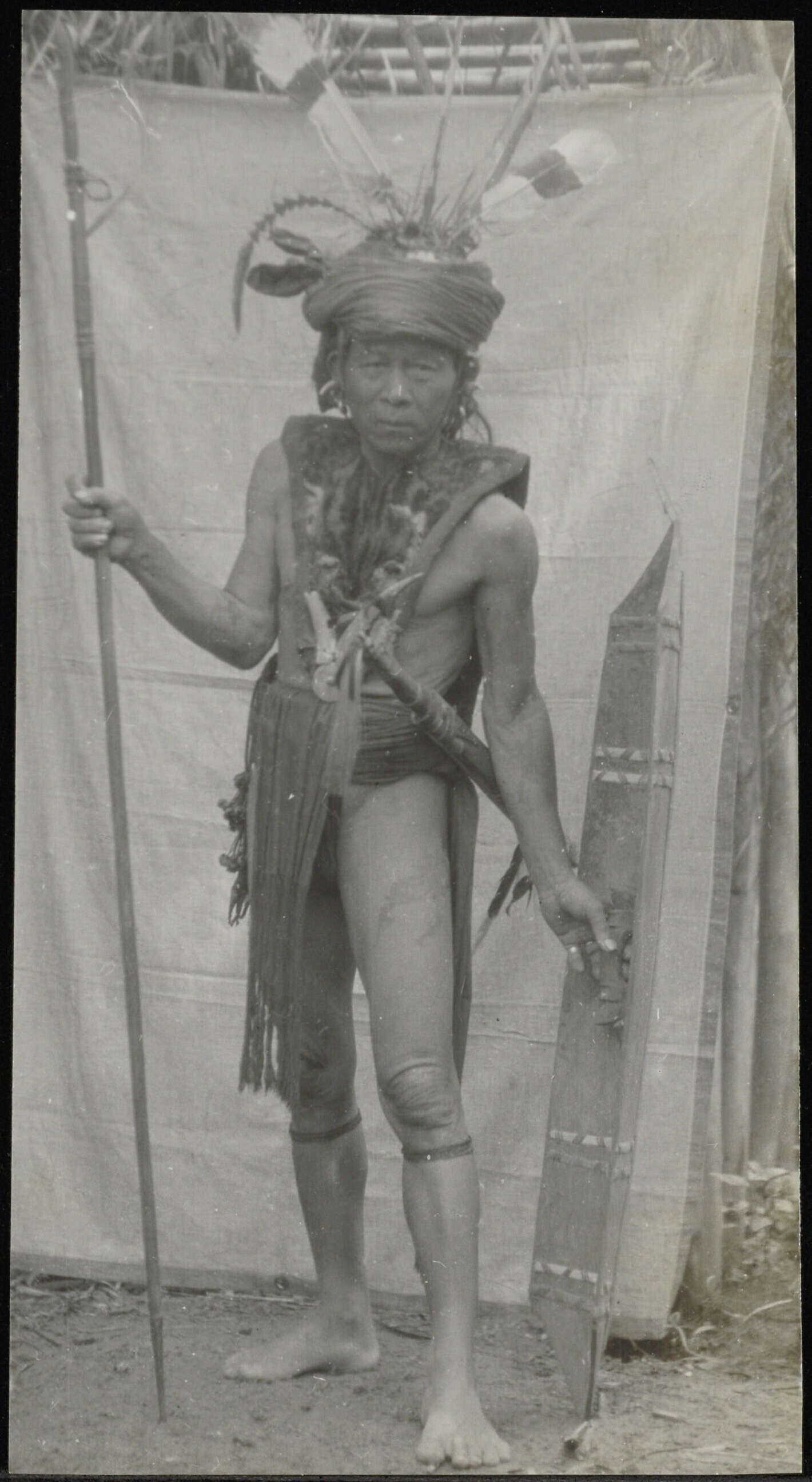 Portret van een gewapende Dayak krijger