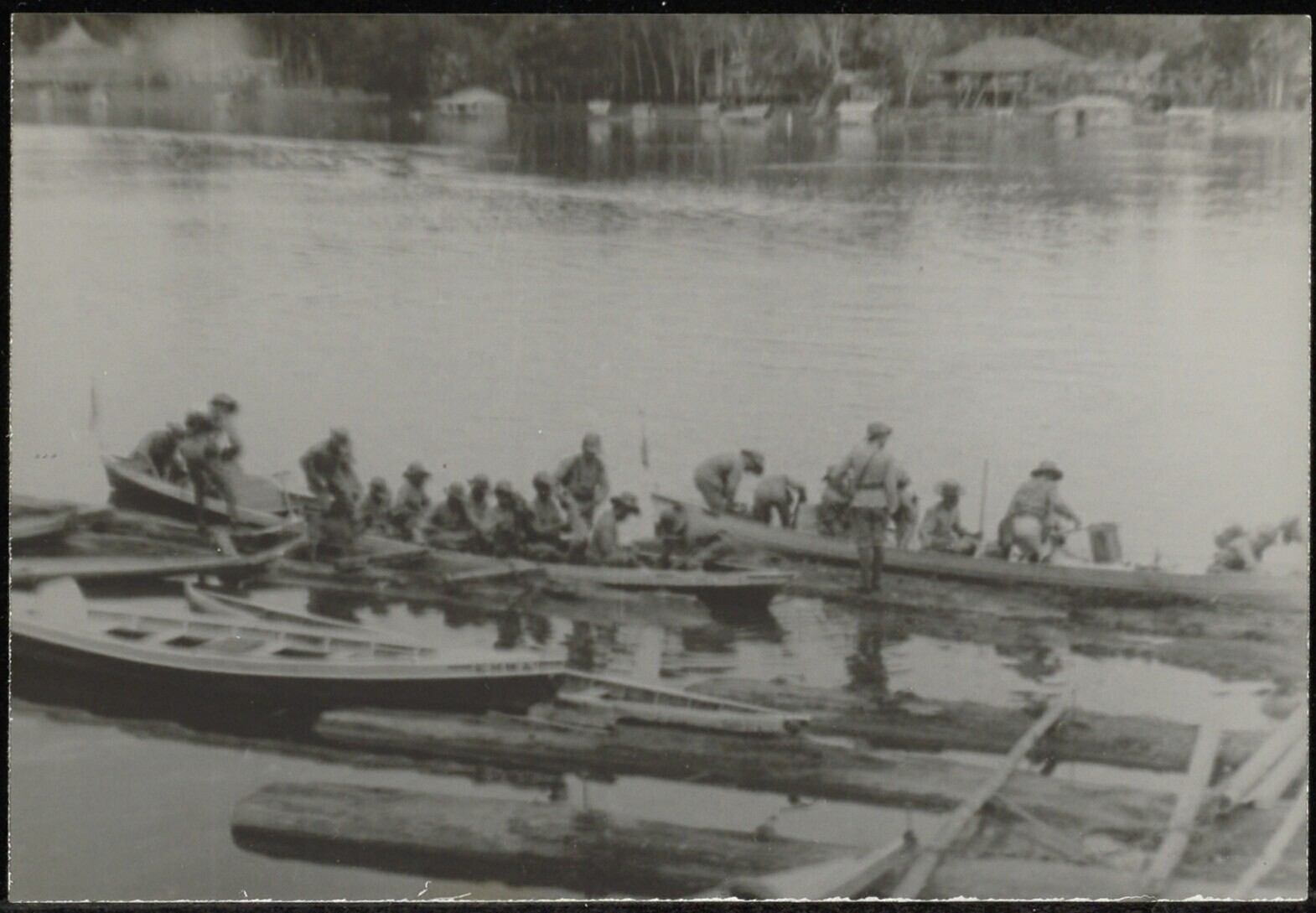 Activiteit van KNIL militairen aan de oever van de Kapuas-rivier in West-Borneo