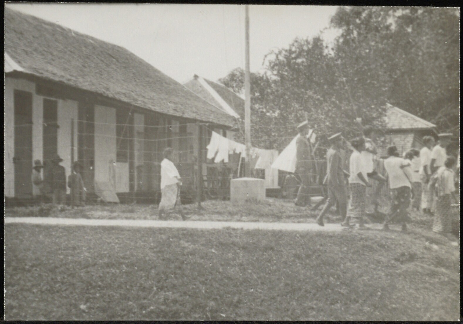 Vrouwen wachten aan de oever van de Kapuas-rivier op de fuseliers van het KNIL