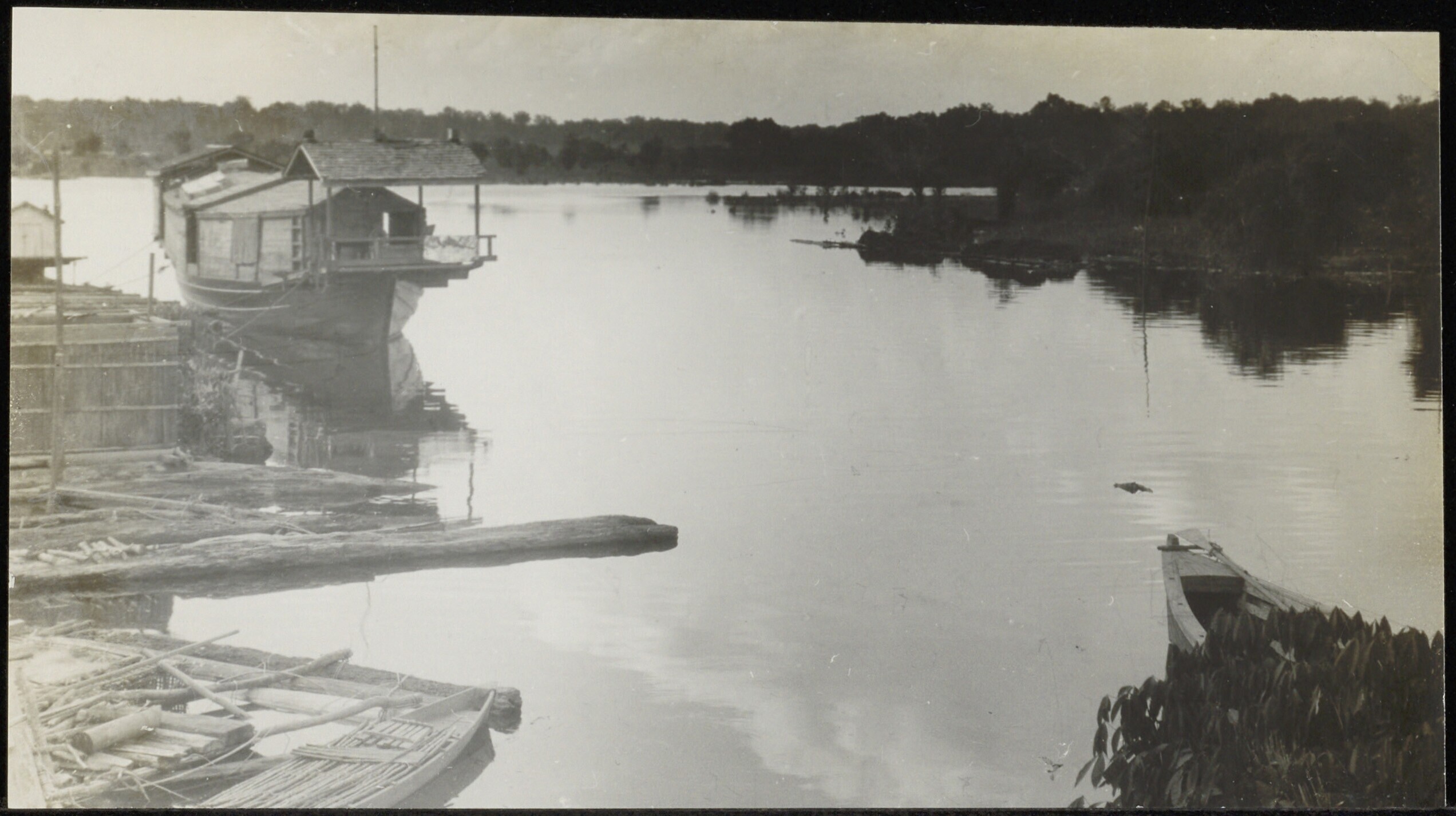 Boot gereed om af te meren bij aanlegplaats aan de oever van een meer