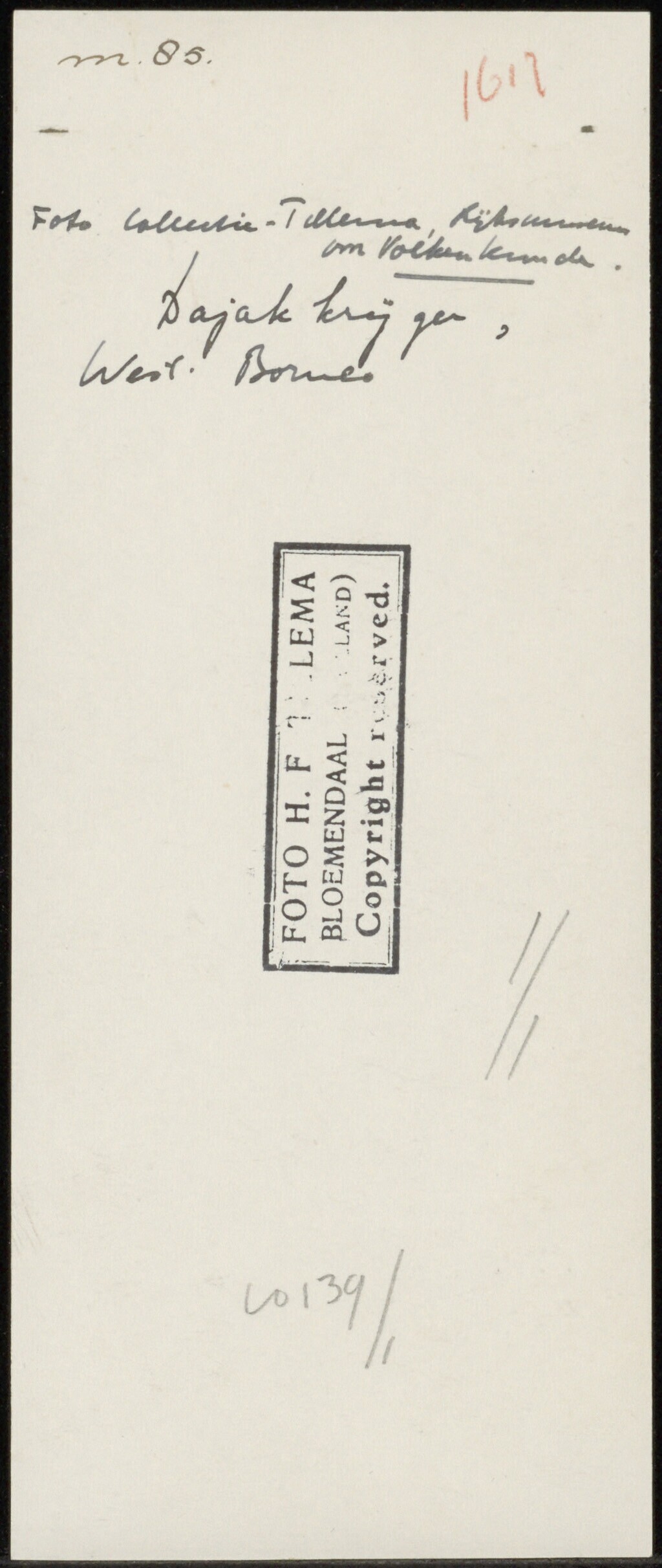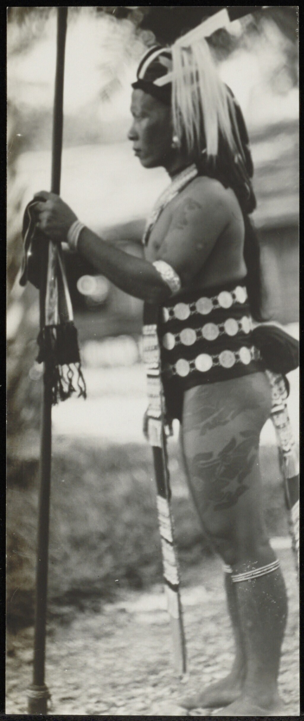 Portret van een Batang Lupar Dayak met tatoeages, in krijgstenue negatiefzakje 3573: feestkleding ?