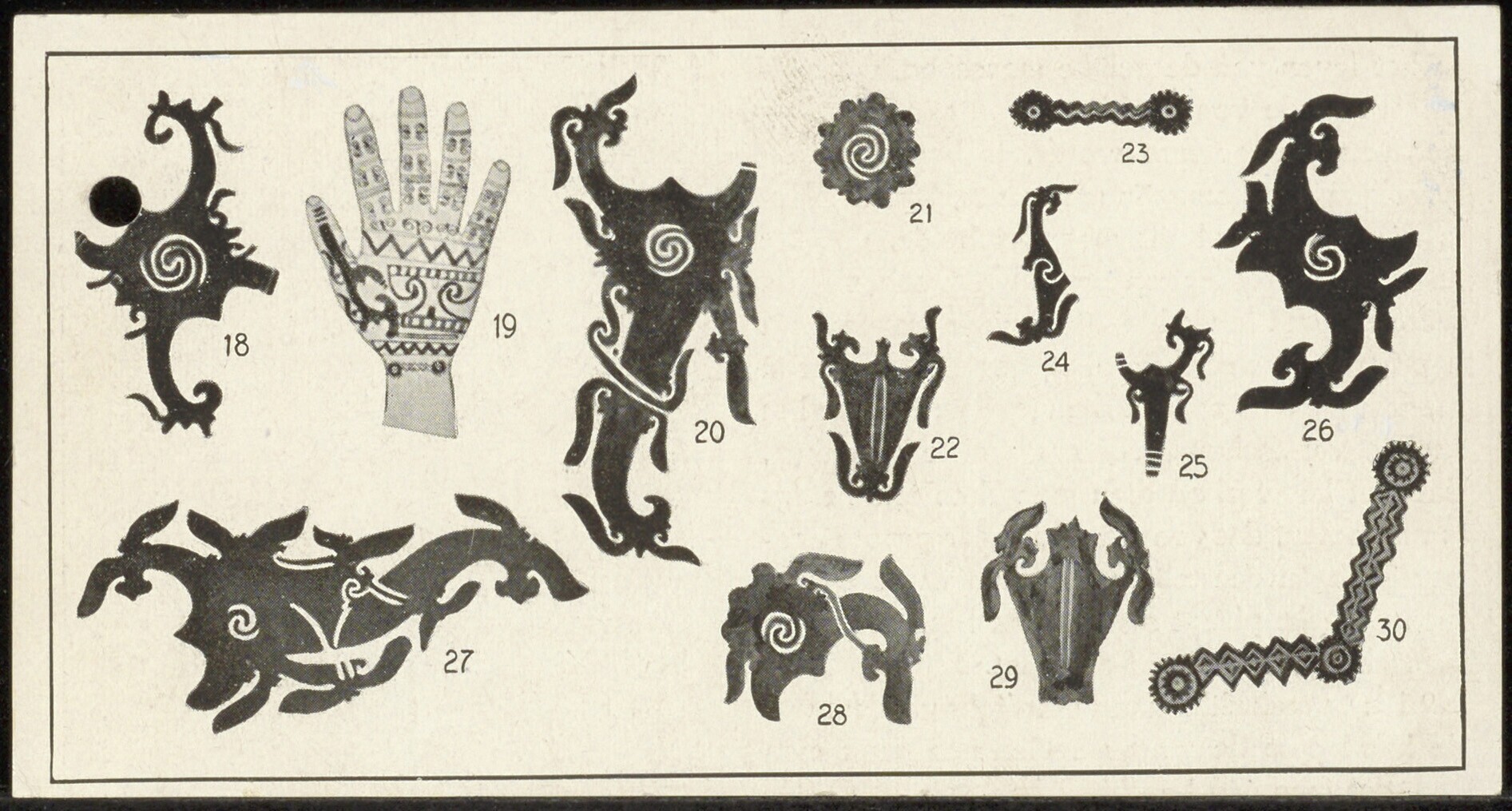 Voorbeelden van tatoeages gebruikt bij de Batang Lupar Dayaks