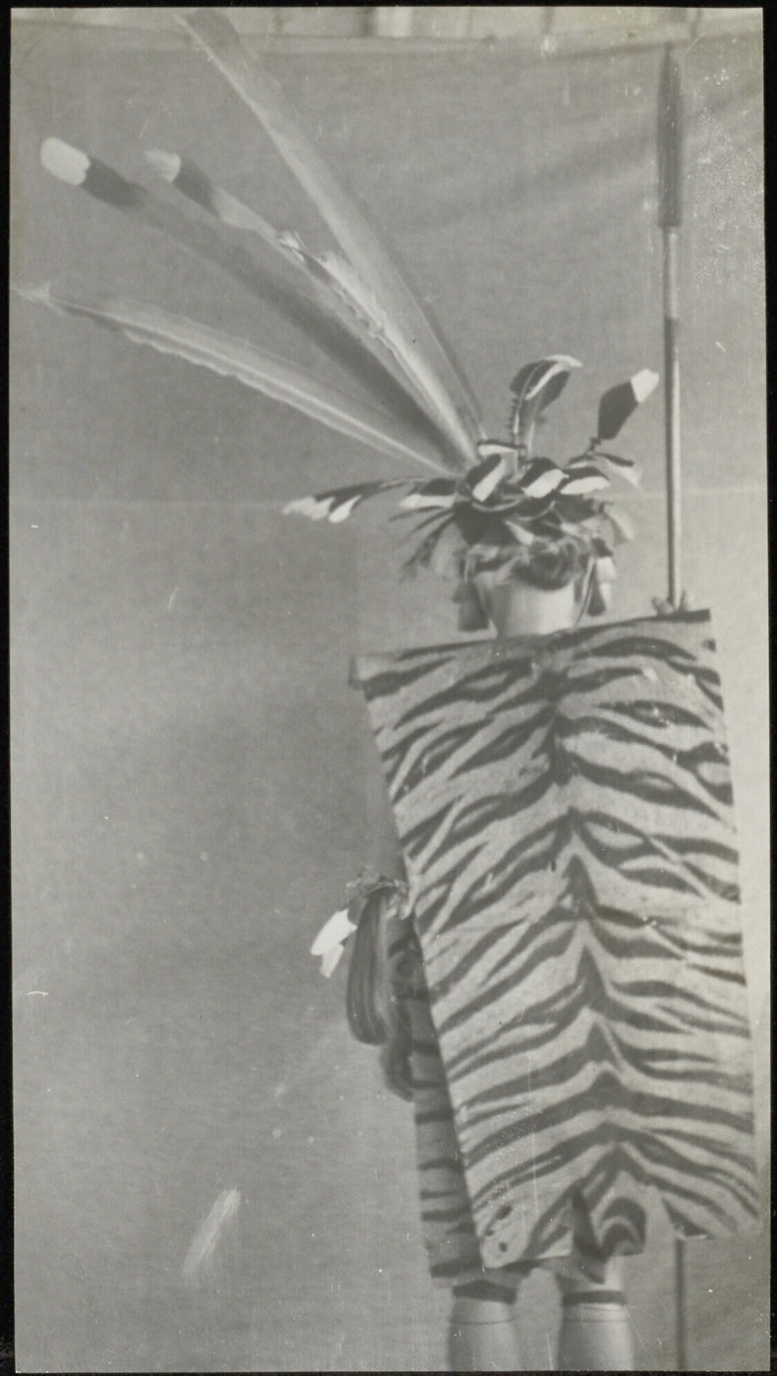 Portret van een zoon van Taman Kila in krijgstenue, op de rug gezien