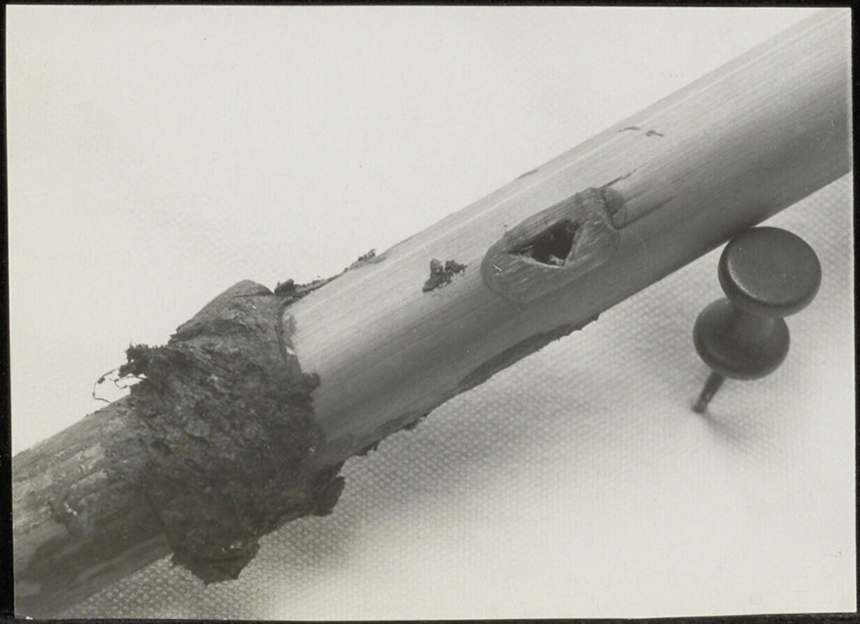 Detail van een fluit dat het gaatje laat zien waarmee de toon kan worden gevarieerd