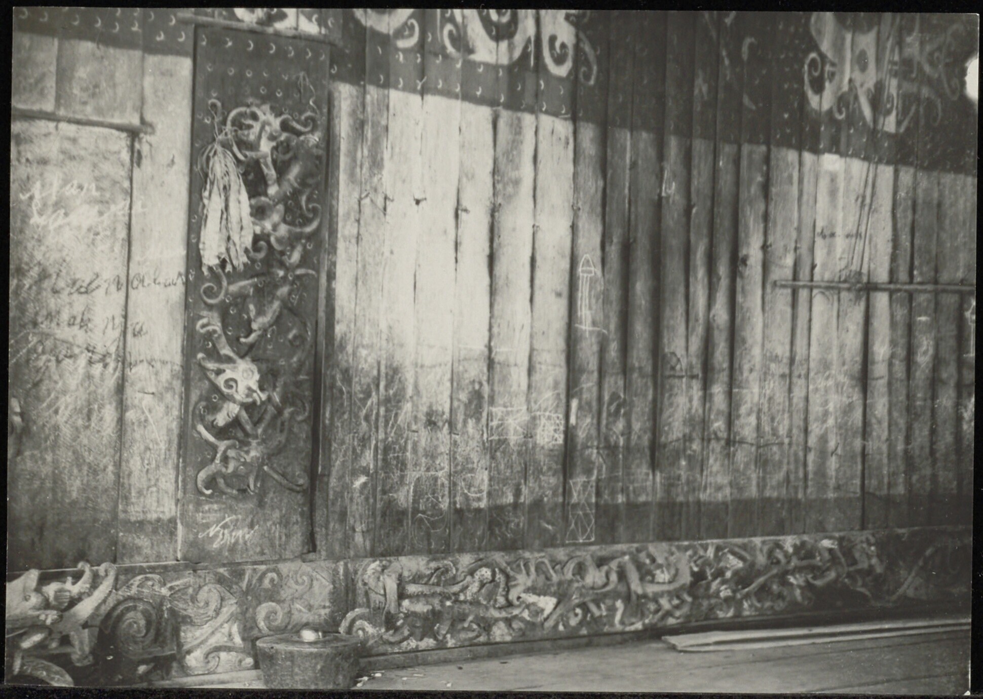 Beschilderde houten wand van een gebouw