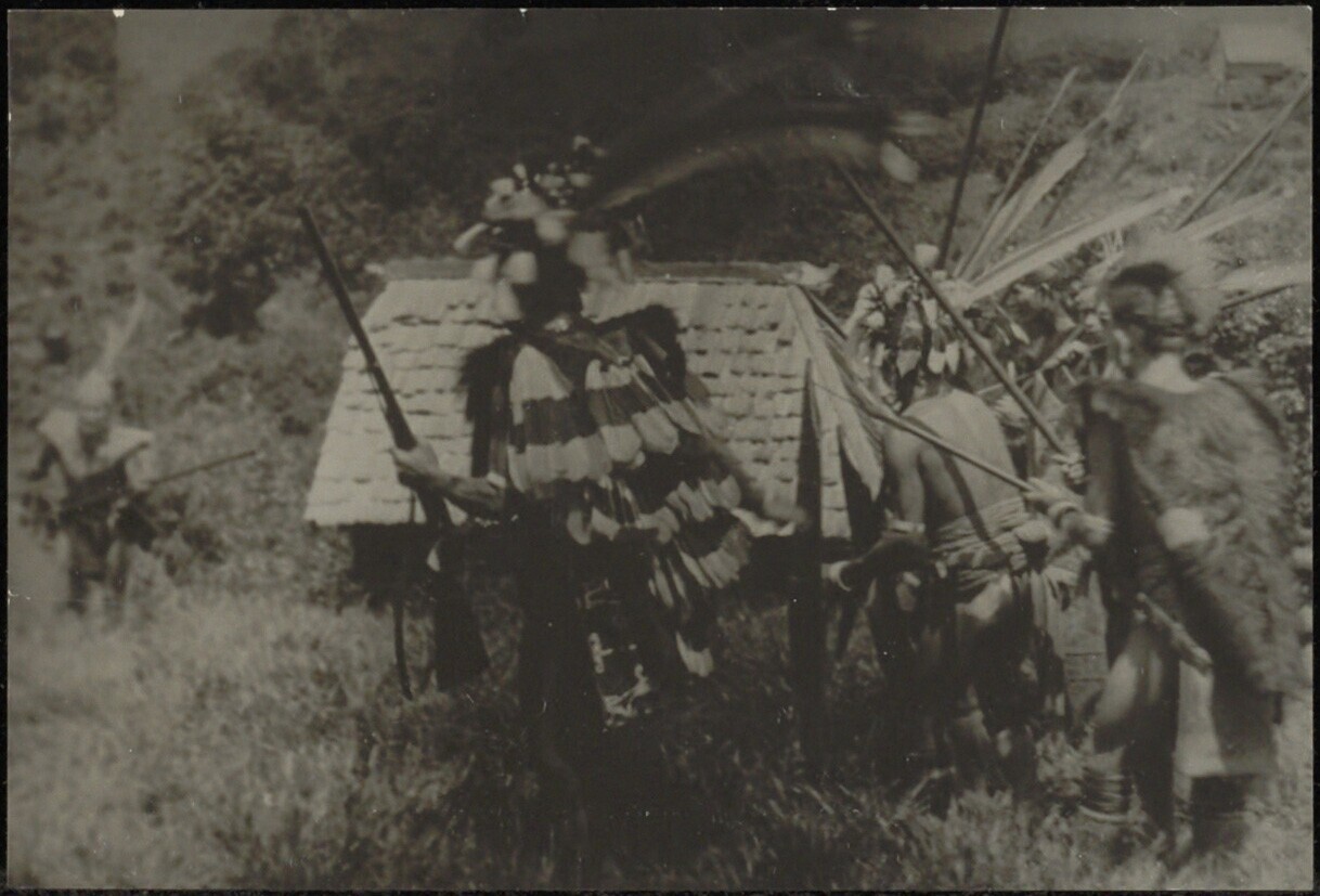 Een groepje mannen in krijgsuitrusting behorend tot een van de strijdende partijen
