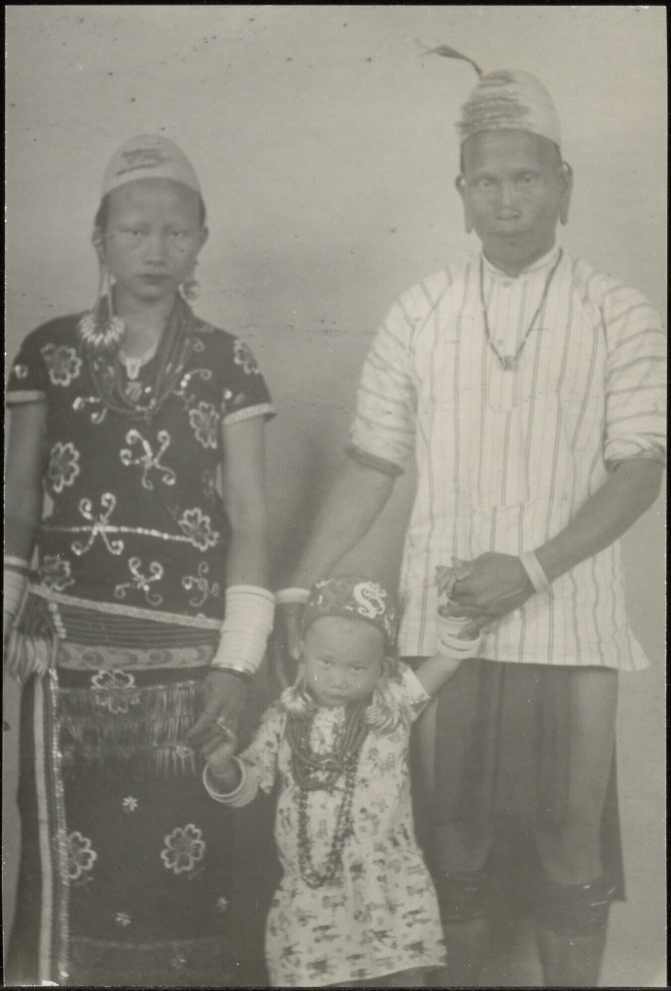 Groepsportret van Taman Giëng met zijn vrouw en dochtertje