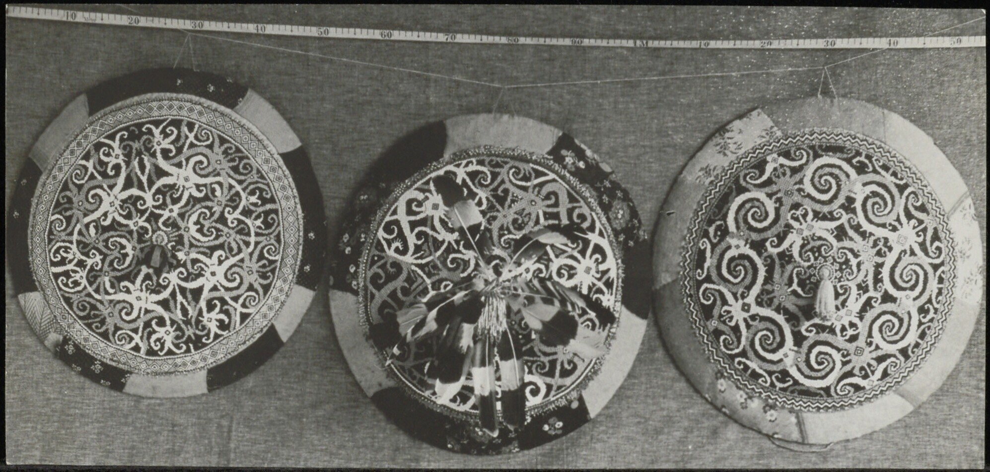 Drie zonnehoeden met verschillende versiering
