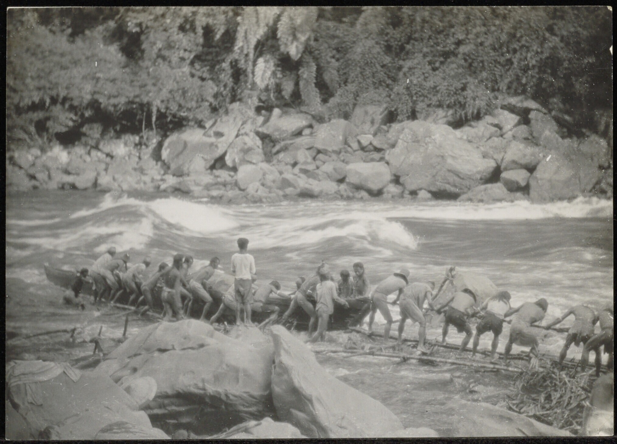 Het trekken van een prauw over een sleephelling met een rotankabel