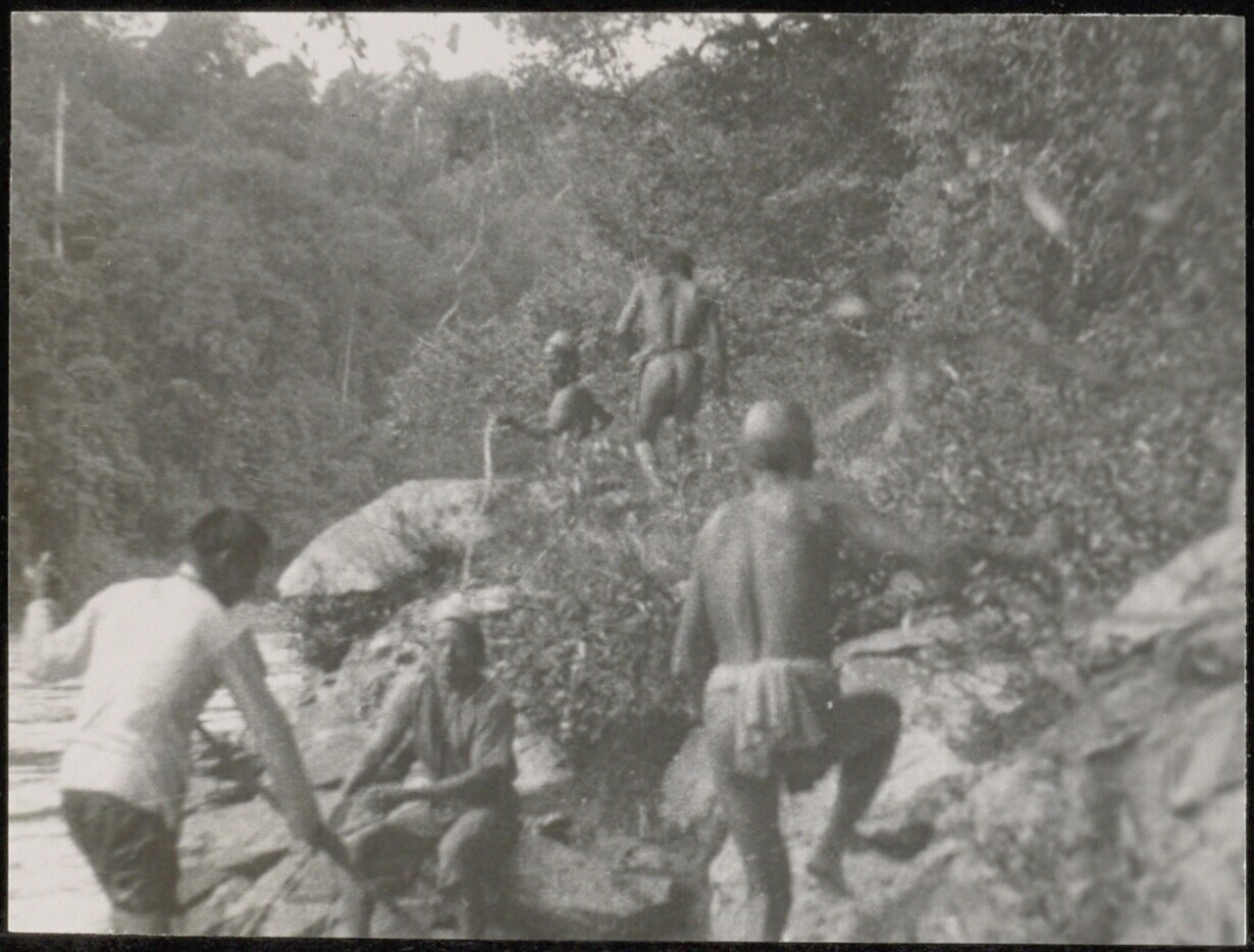 Een groep Dajaks op een oever