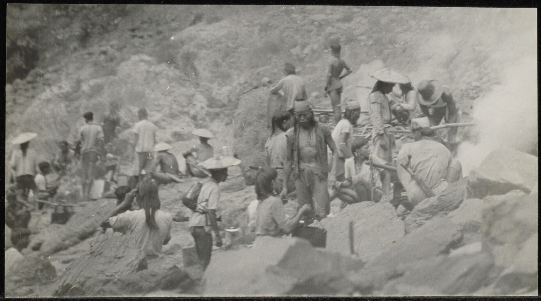 Een groep Dajaks bezig met het voorbereiden van het voedsel