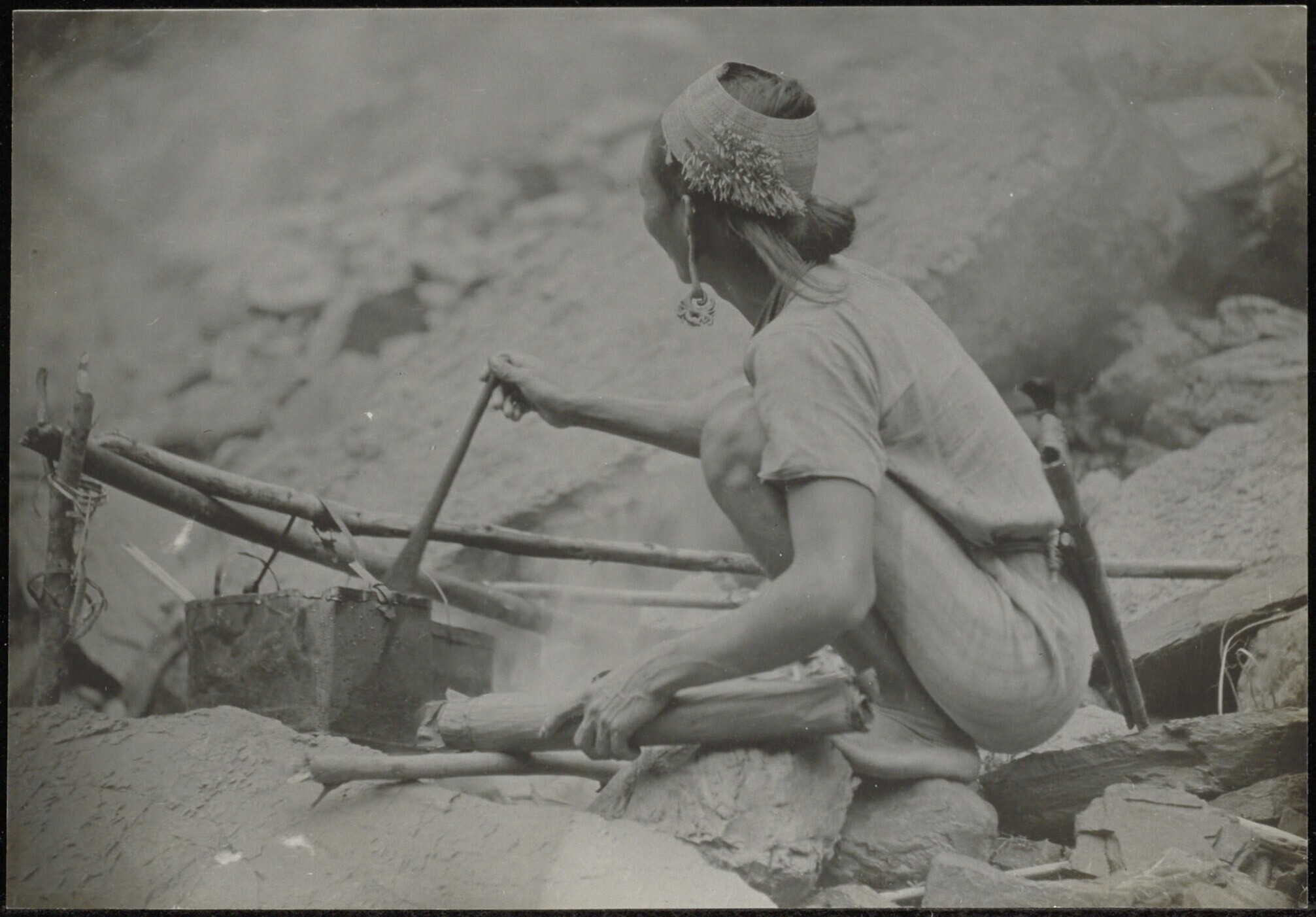 Een groep Dajaks bezig met het voorbereiden van het voedsel