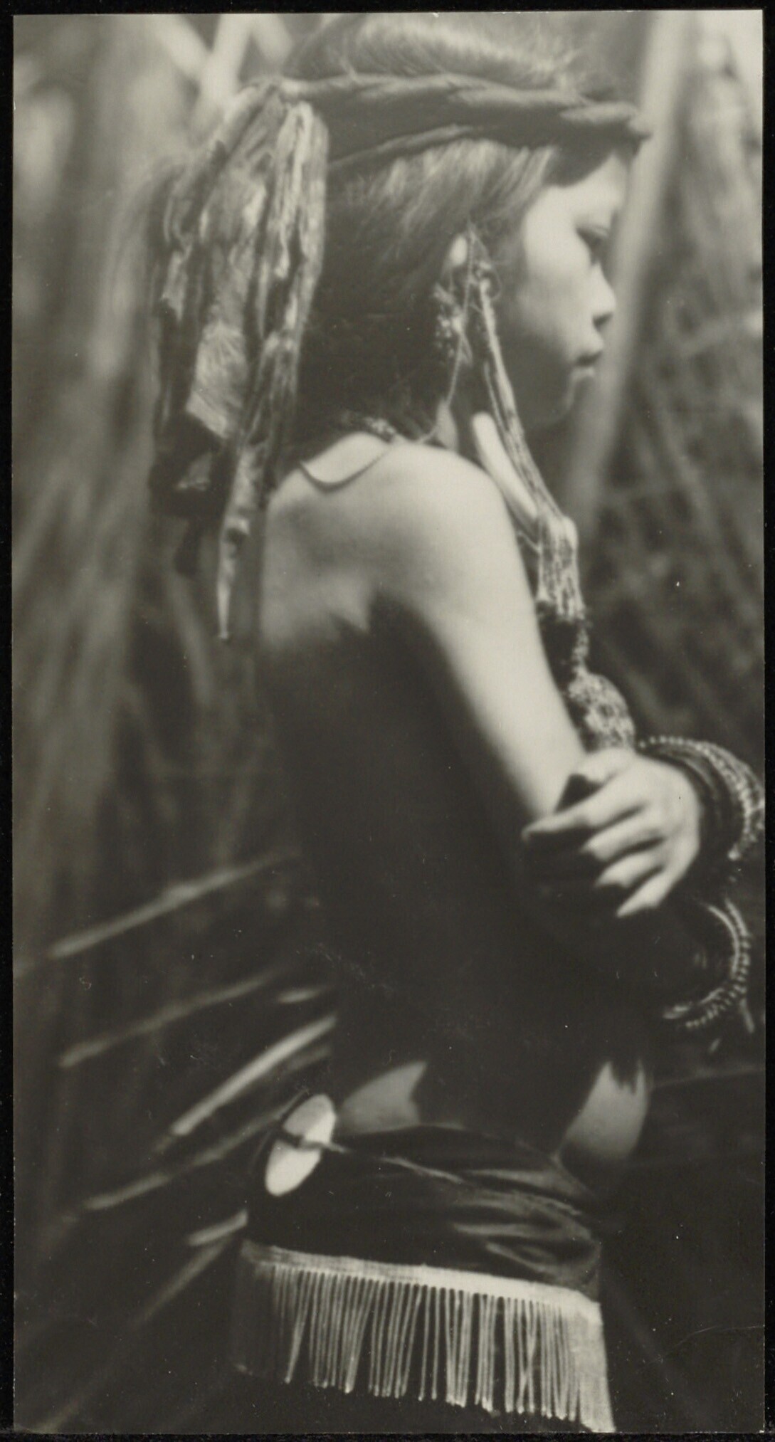Een Poenan Moesang meisje met versieringen