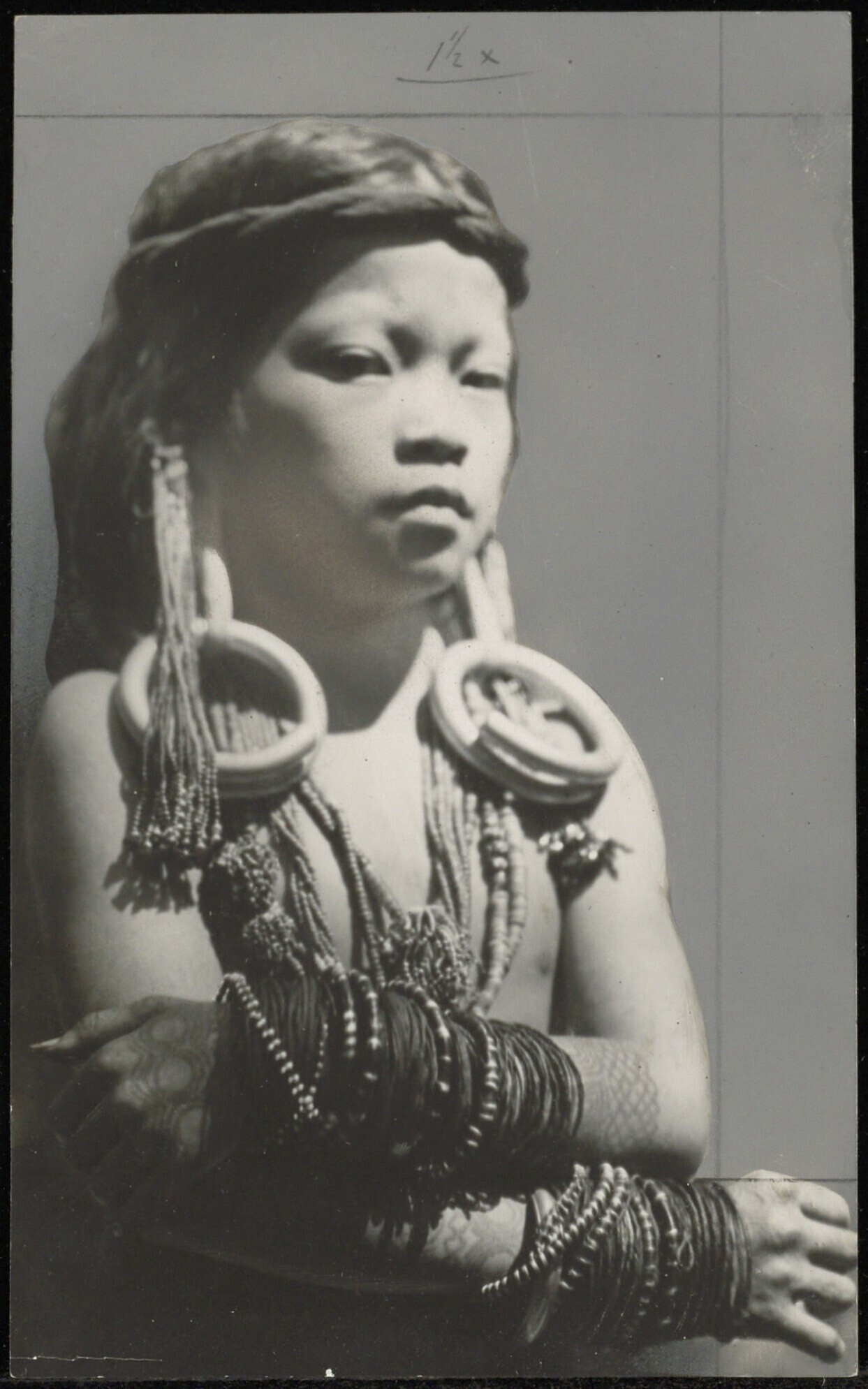 Een Poenan Moesang meisje met versieringen