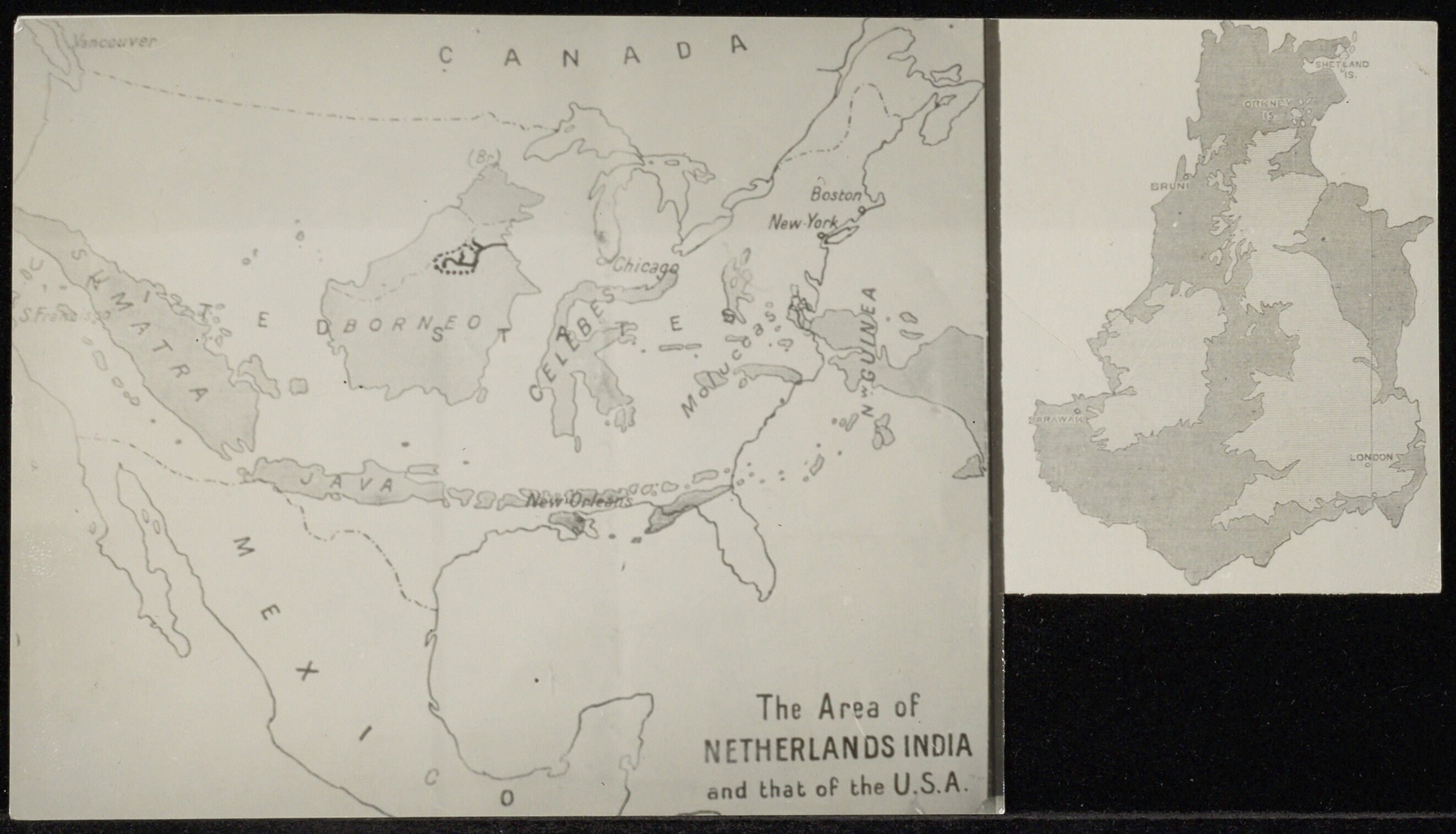 Kaart van het oppervlak van Nederlands-Indië afgezet tegen dat van de U.S.A.